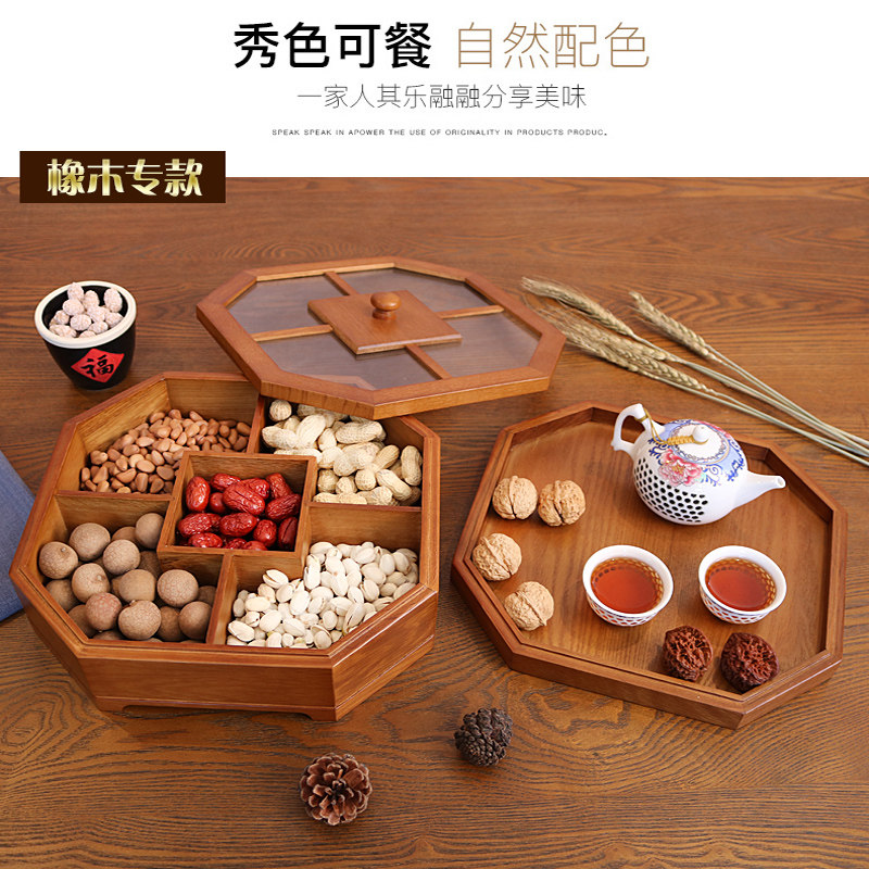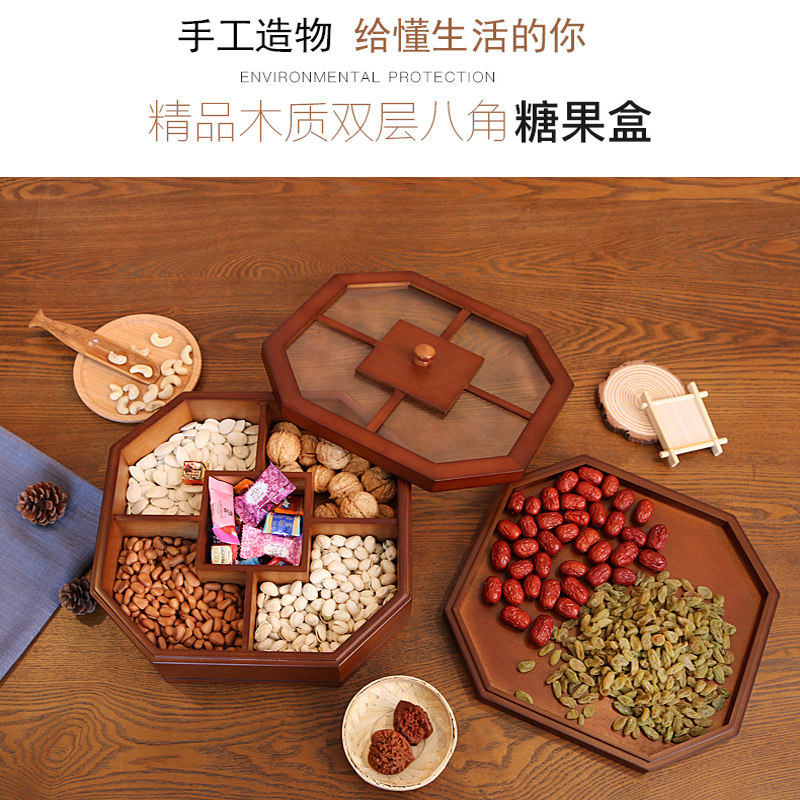 New Chinese-style living room solid wood nut plate double-layer with lid household fruit tea table compartment storage box melon seeds dried fruit box