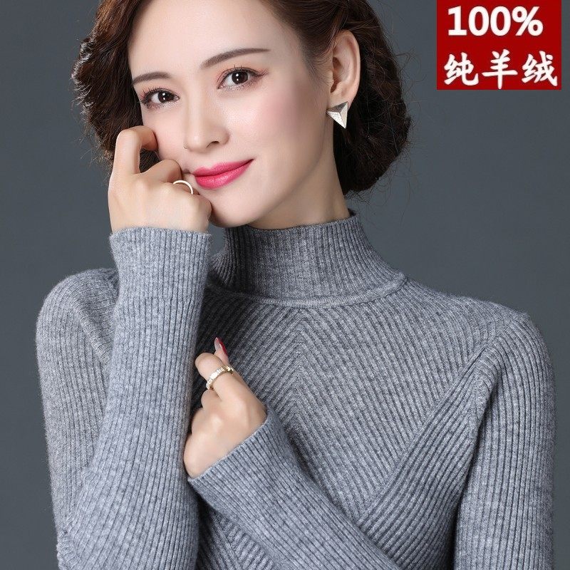 Fall/Winter 2021 new women's mid-neck pure cashmere sweater white fitted thin wool base knit sweater