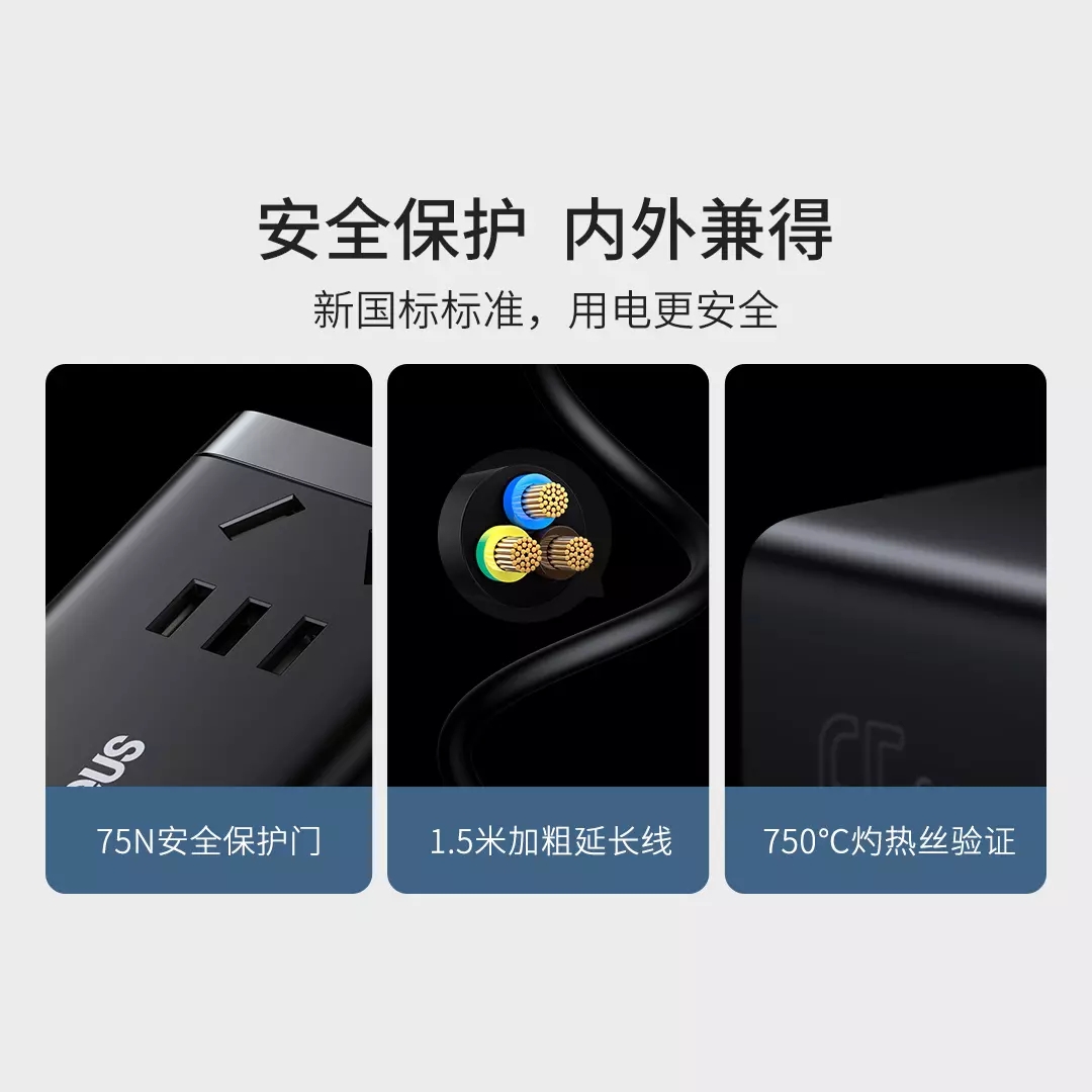 Baseus 65W Gallium Nitride 3rd Generation Desktop Fast Charge Charger Extension Cable Smart Porous Plug Household Wiring Board