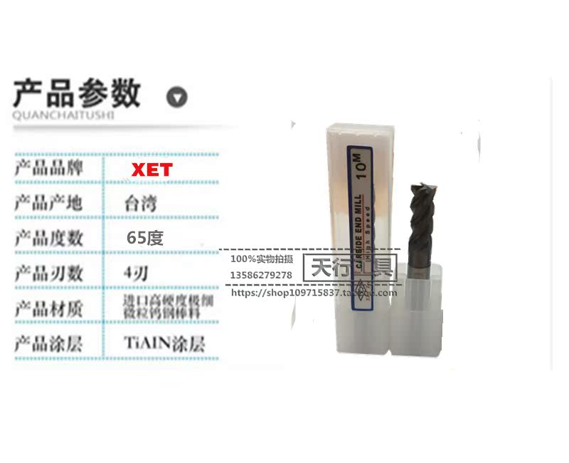 XET65 degree tungsten steel head-end milling cutter imported cemented carbide 4-edge flat-bottomed coating machining centre D1234-12-Taobao
