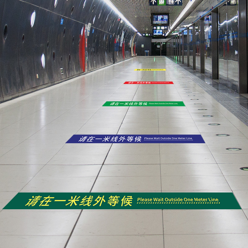 One meter line floor paste clinic epidemic prevention and control 1 meter away from the line waiting interval yellow line isolation propaganda paper logo