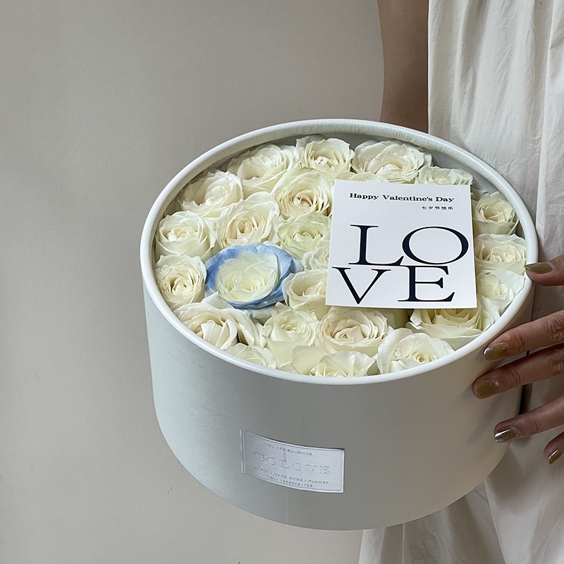 Floral gift box round hand large holding barrel round box flowers box floral art hugging barrel Valentine's Day flower barrel flower arrangement box cover