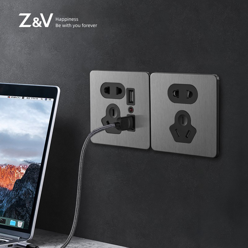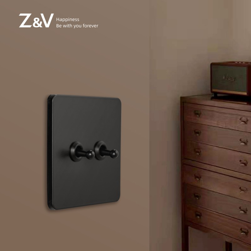 ZV retro style gold brushed 86 type light luxury pastoral style solid brass lever metal switch socket panel