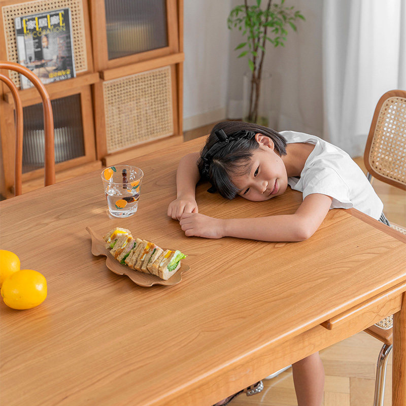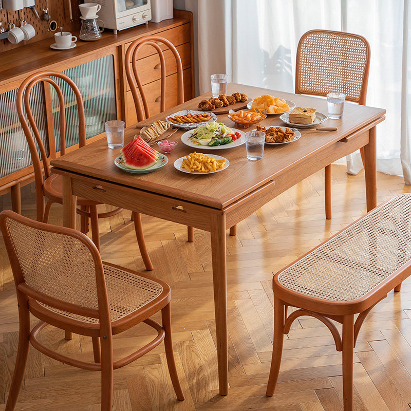 Senzhi furniture retractable dining table home small apartment Japanese solid wood cherry wood rectangular foldable table and chair combination