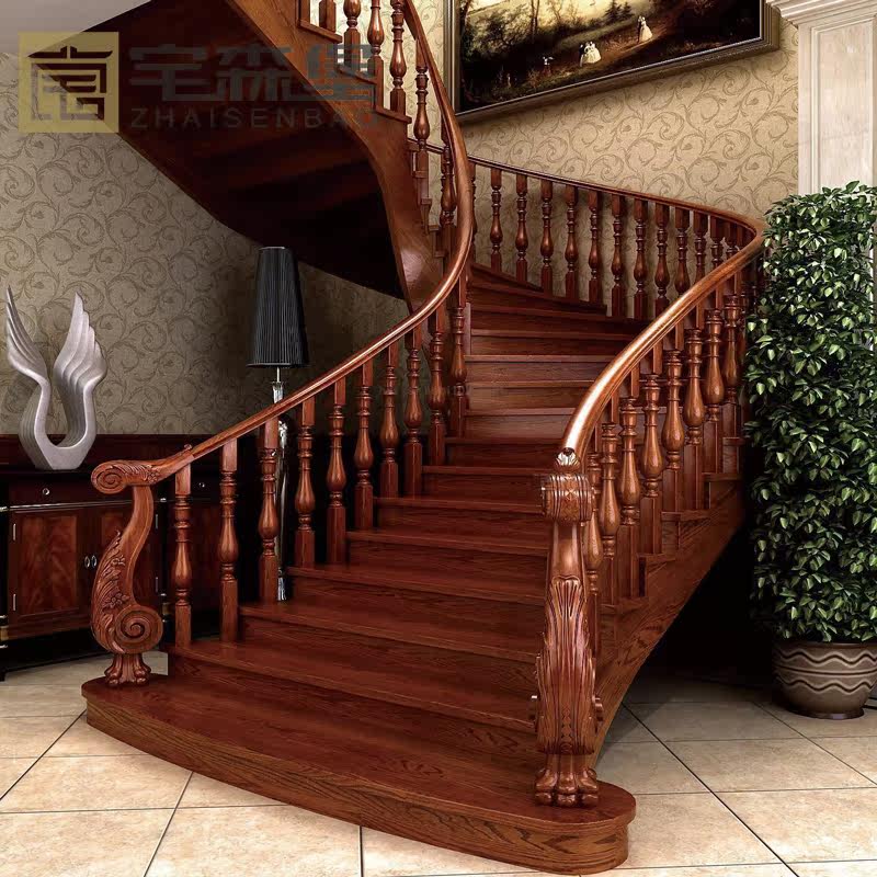 Home duplex solid wood staircase custom overall staircase simple corner ladder indoor and outdoor attic staircase wooden ladder