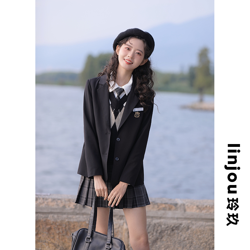 linjou Lingjiu black suit jacket female spring 2022 new Korean version small sub casual Western suit jacket