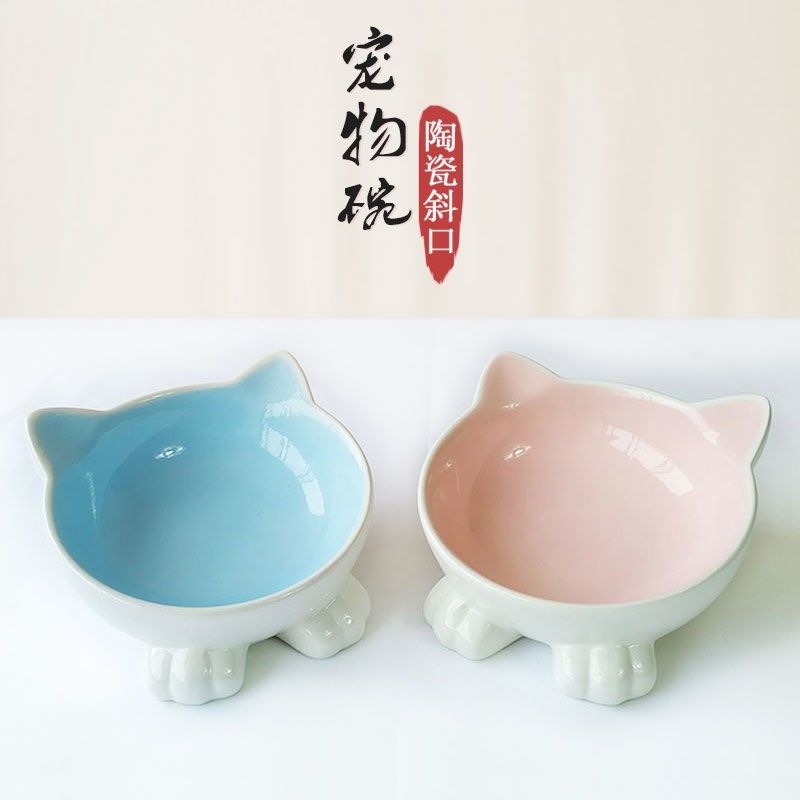 Ceramic cat bowl cat pot protects cervical spine anti-tap slope puppy bowl small dog pot dog bowl