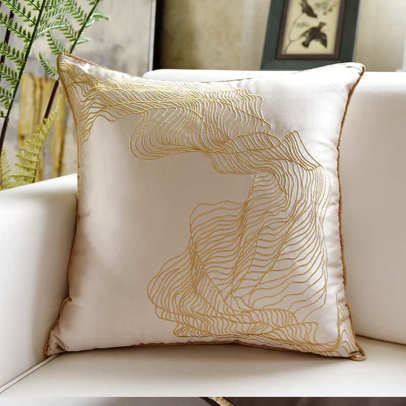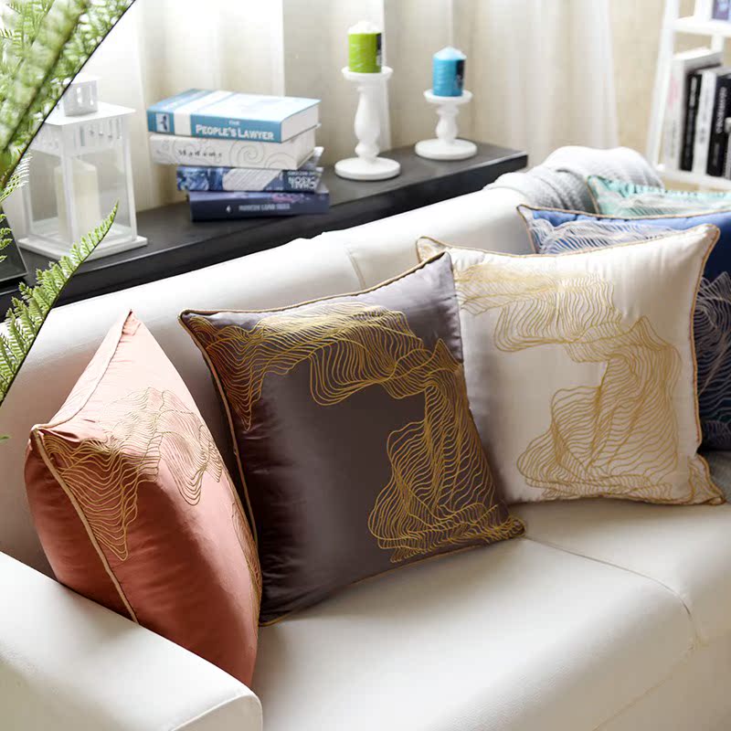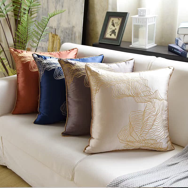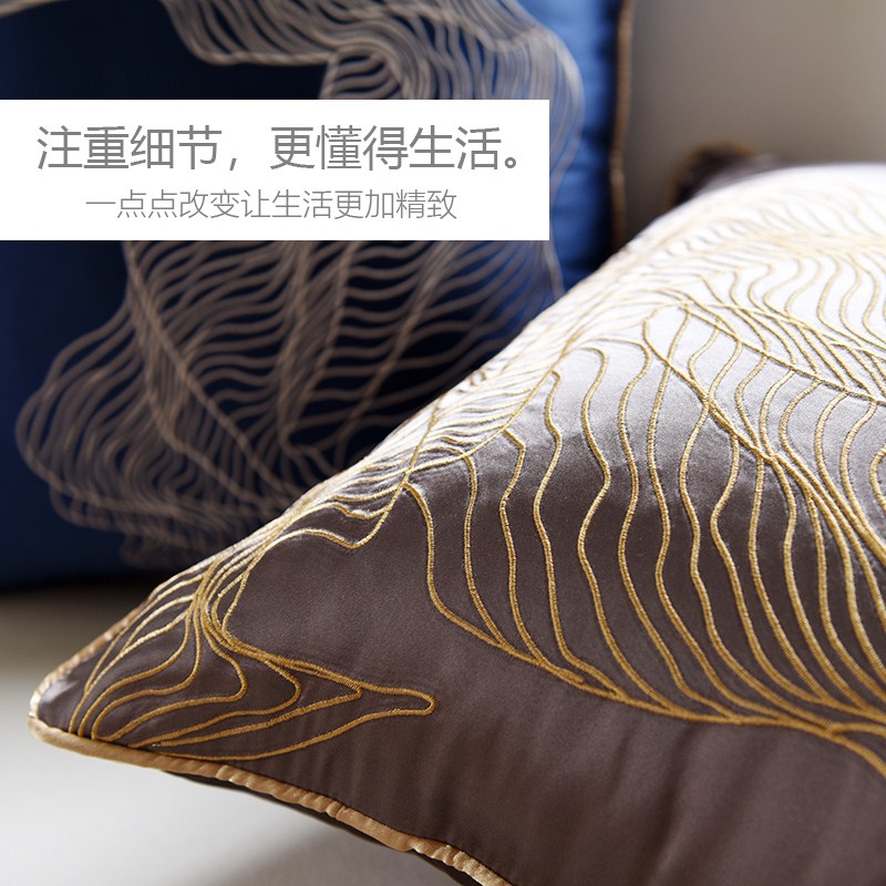 New Chinese-style embroidery pillow light luxury model room sofa cushion cover bedroom headrest pillow large backrest living room square