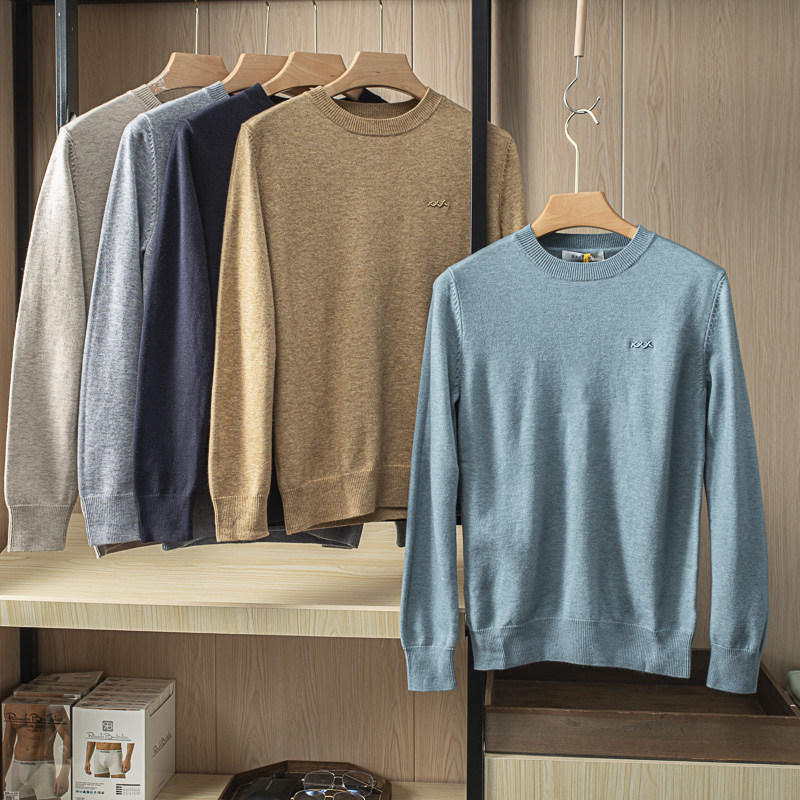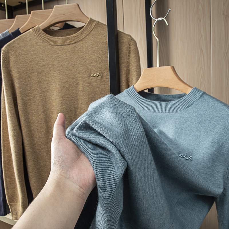 Ultra-value store pull-out men's autumn and fine soft glutinous simplicity about 100 hitch-knitted sweatshirt round collar bottom sweater