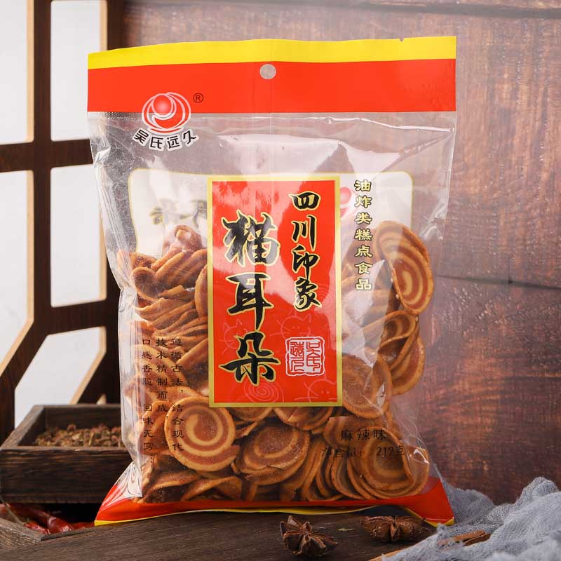 Wu's long-term cat ears cat crisp Sichuan specialty Neijiang specialty snack fat intestine crisp vegetarian big bag 192g