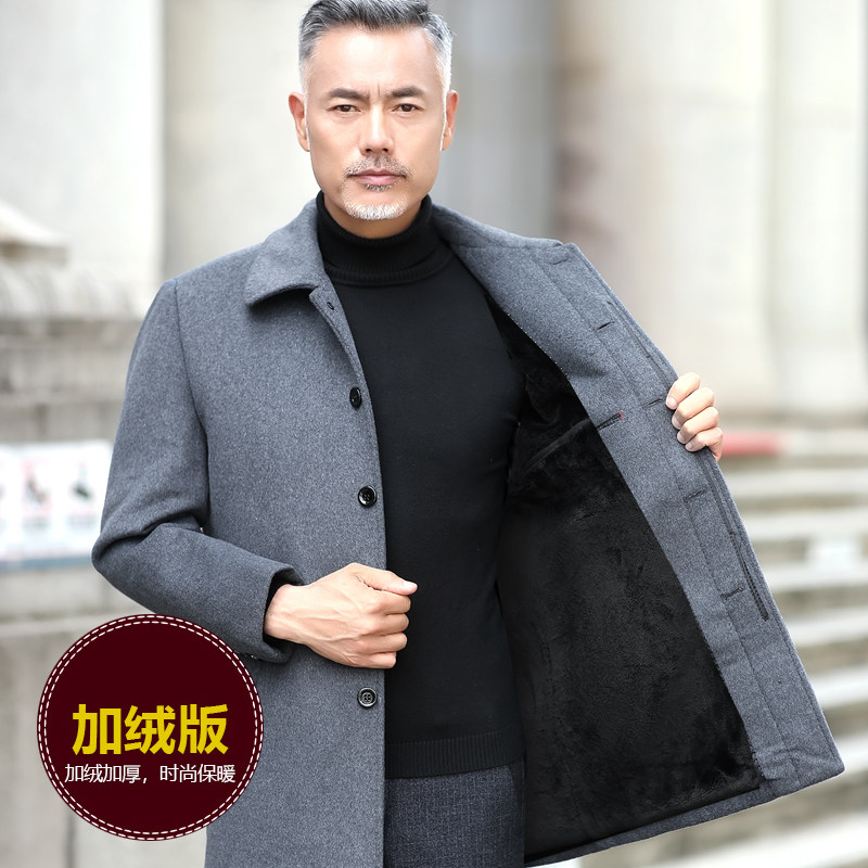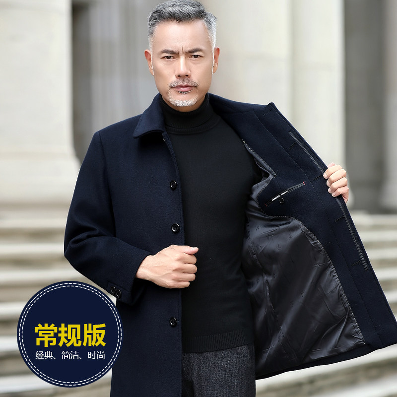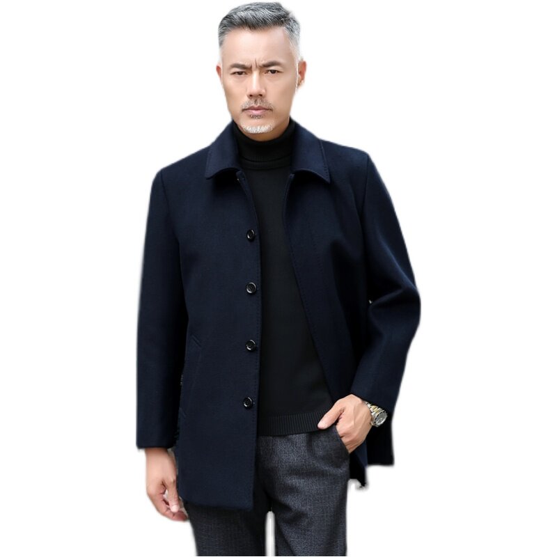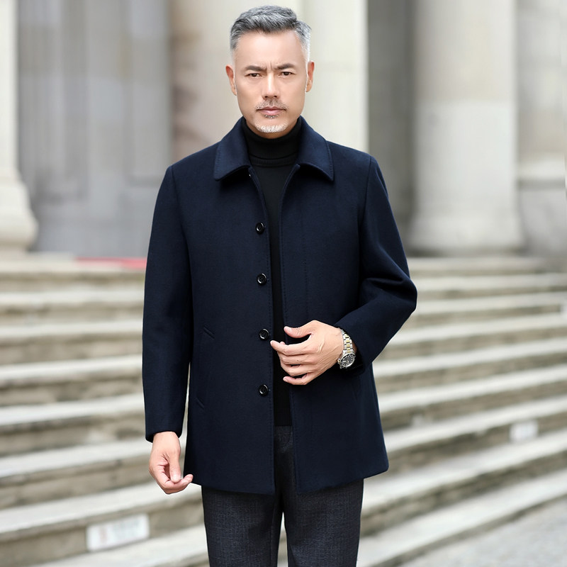 Spring and autumn middle-aged and elderly woolen trench coat men's woolen coat cashmere short business casual jacket dad's clothing
