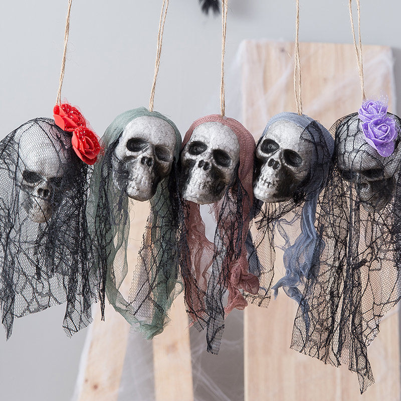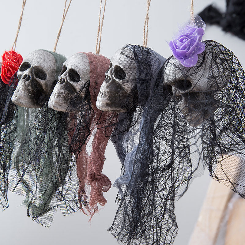 Hallowen Festival Horror Adornment Interior Shop Window Pendant skeletal pendant Skull Pendant Kindergarten Pendulum with Pumpkin Light Hanging Accessories