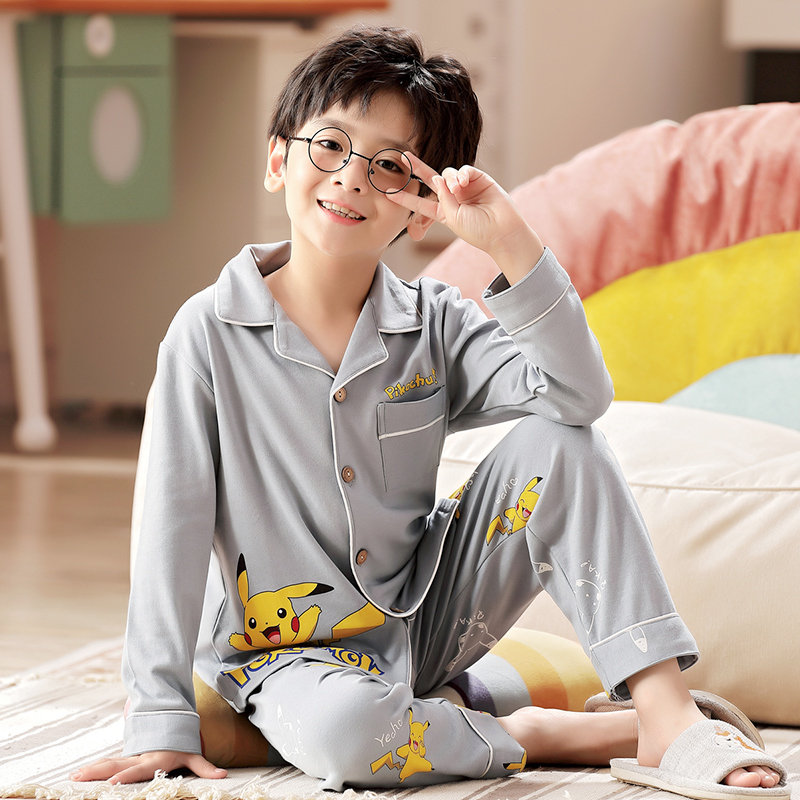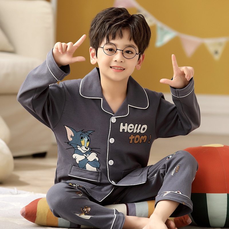Pure Cotton Children Sleepwear Spring Autumn Summer Boy Baby Long Sleeve Cartoon Dinosaur Teen CUHK Children's Home Suit Suit