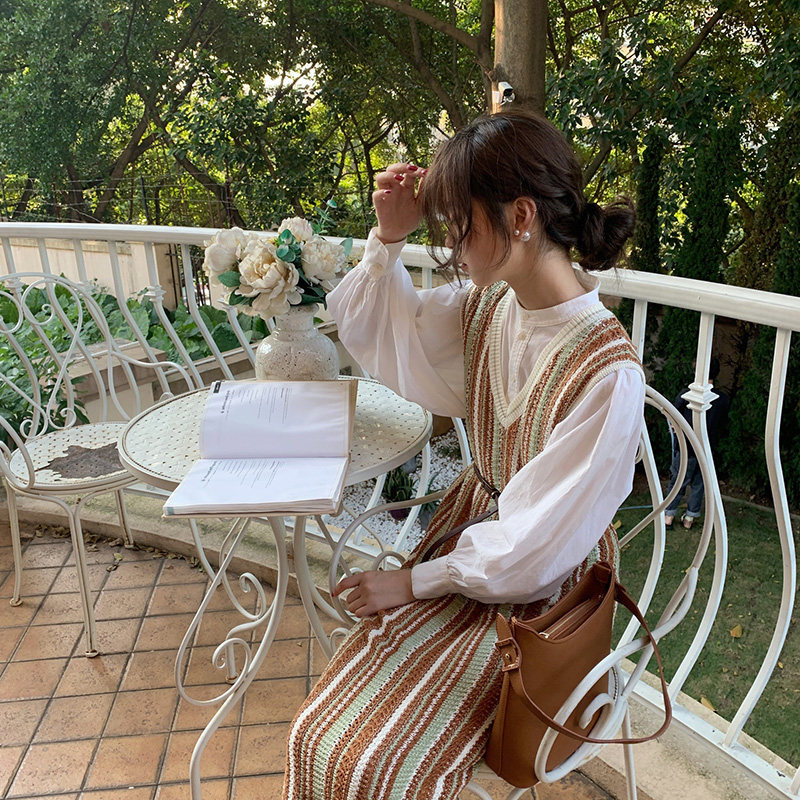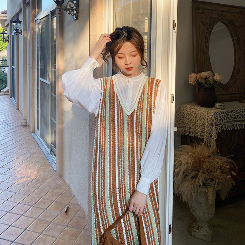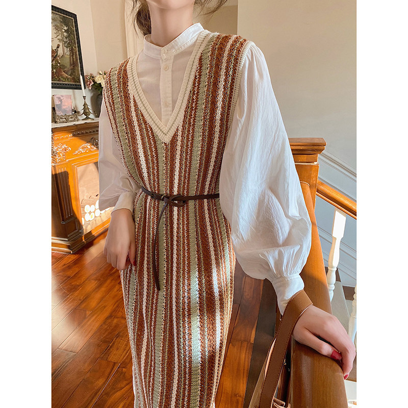 White shirt striped one-piece dress (commuter women's dress superior sense suit lukewarm unique don't make dresses net red exploits high-end Euro-stock foreign air formal occasion to dress)