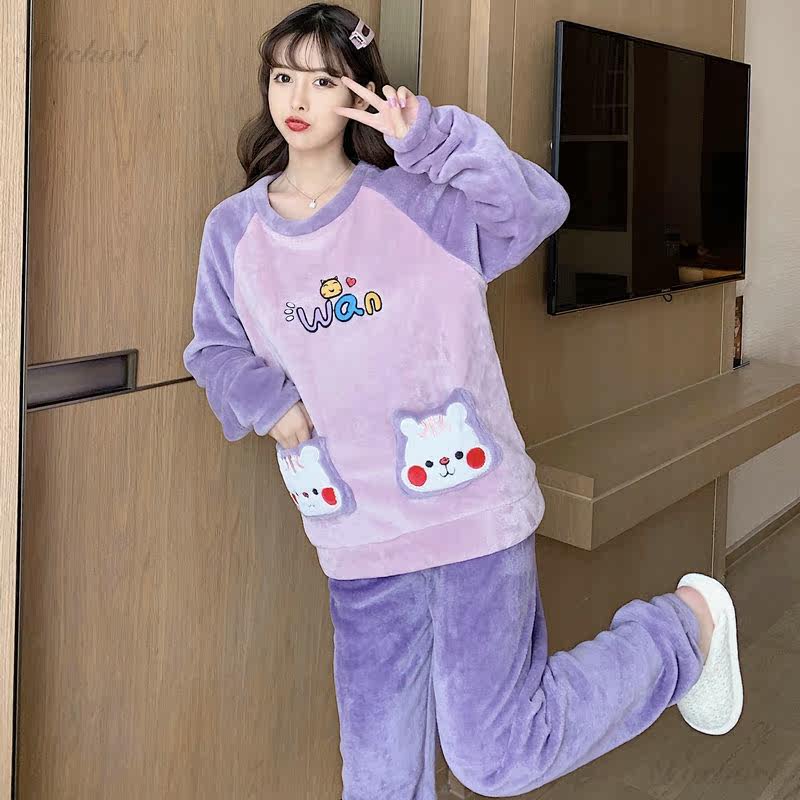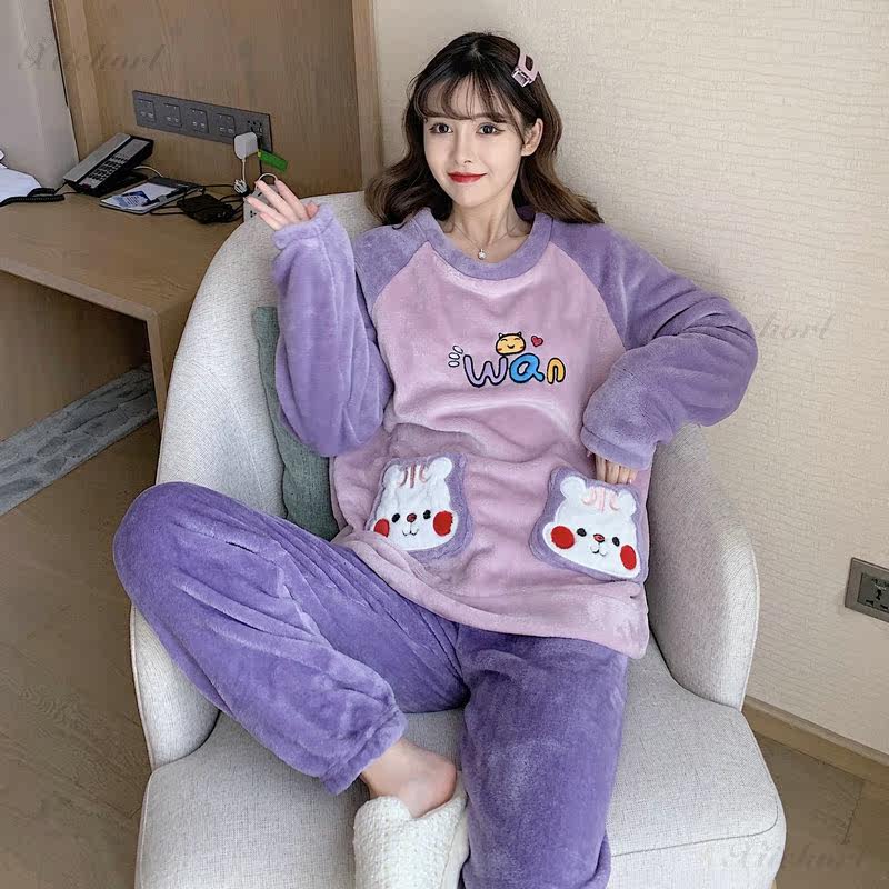 Coral Velvet Pajamas Spring and Autumn Female 2021 New Home Clothing Lady Winter Heat Flnnel