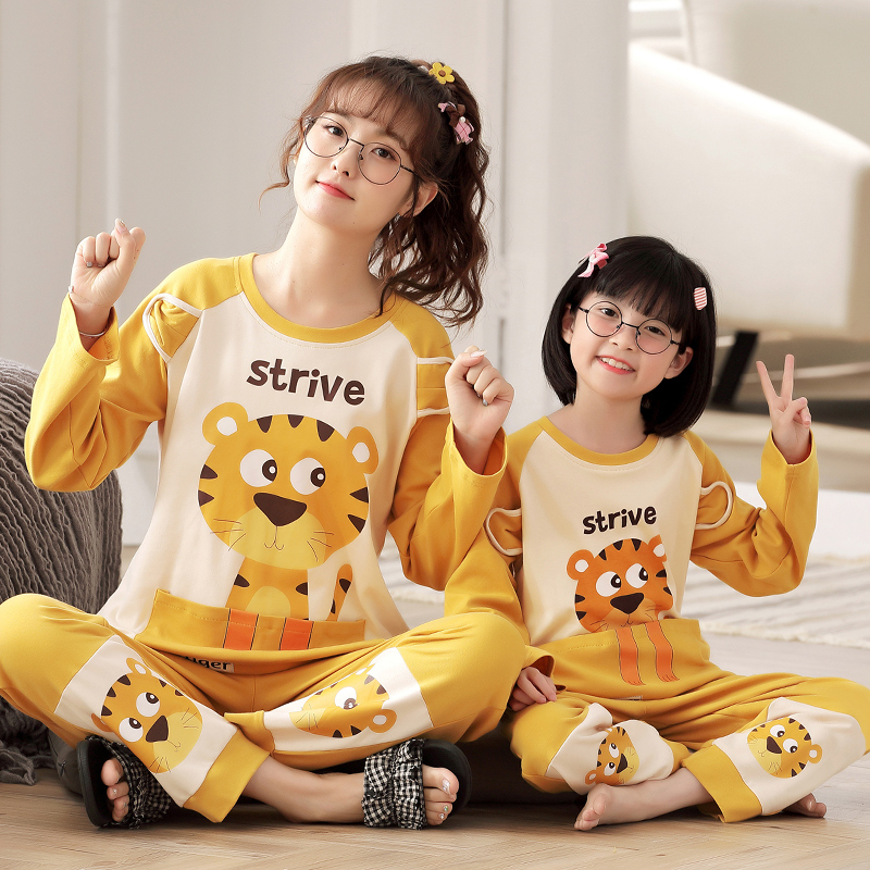 Pure Cotton Girl Sleepwear Spring Autumn baby CUHK Tong parenting Mother woman Long sleeves Child All cotton Home Suit Cartoon