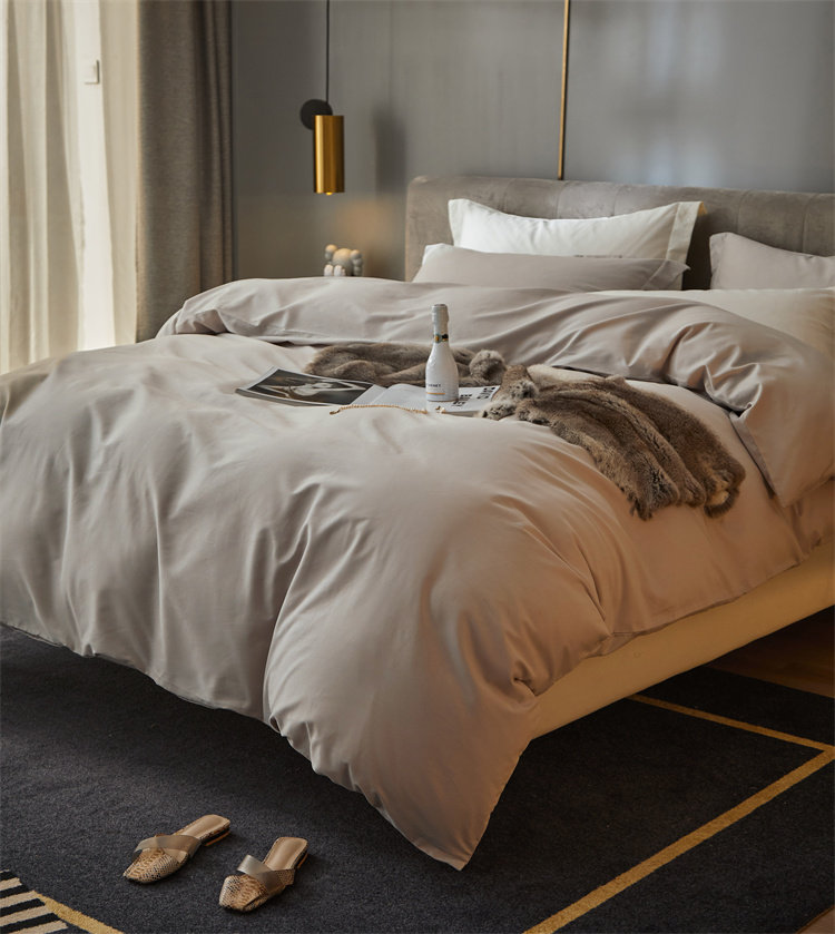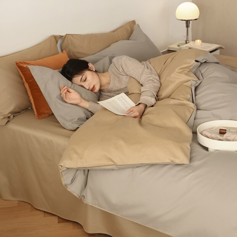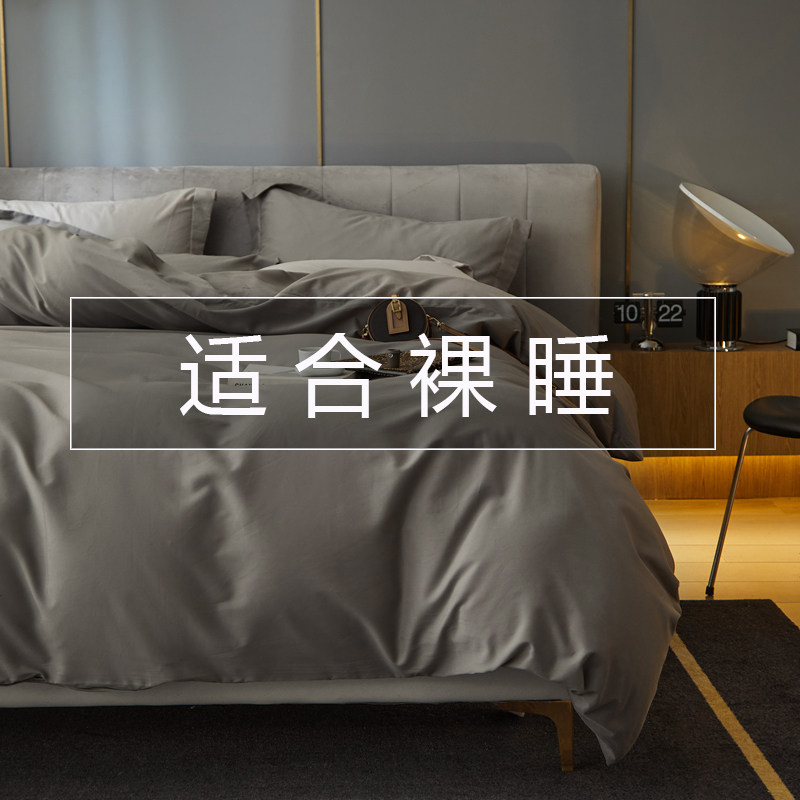 Nordic minimalist 100 long suede cotton mill wool pure colour four pieces of pure cotton full cotton warm quilt cover 1 8 bed bedding-Taobao
