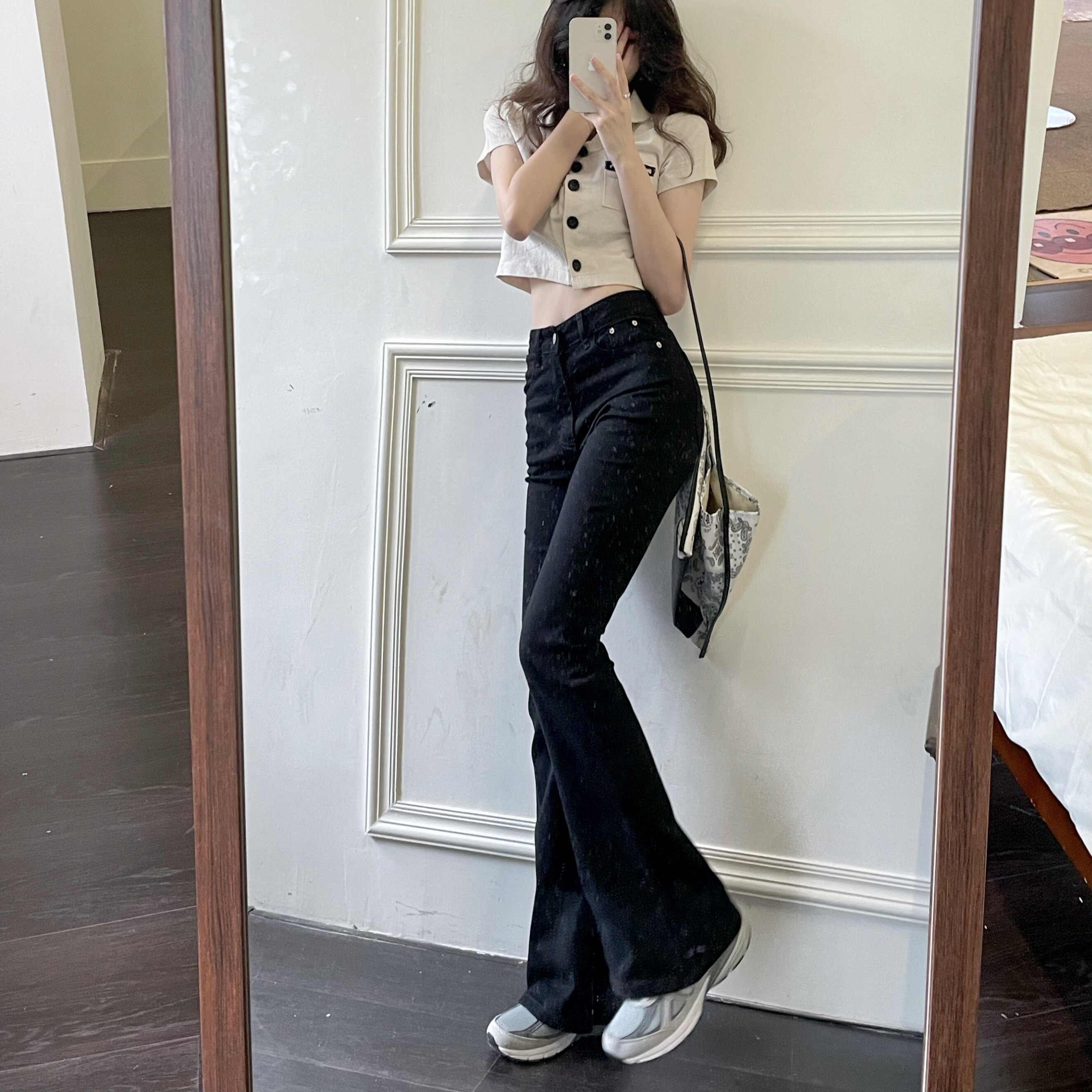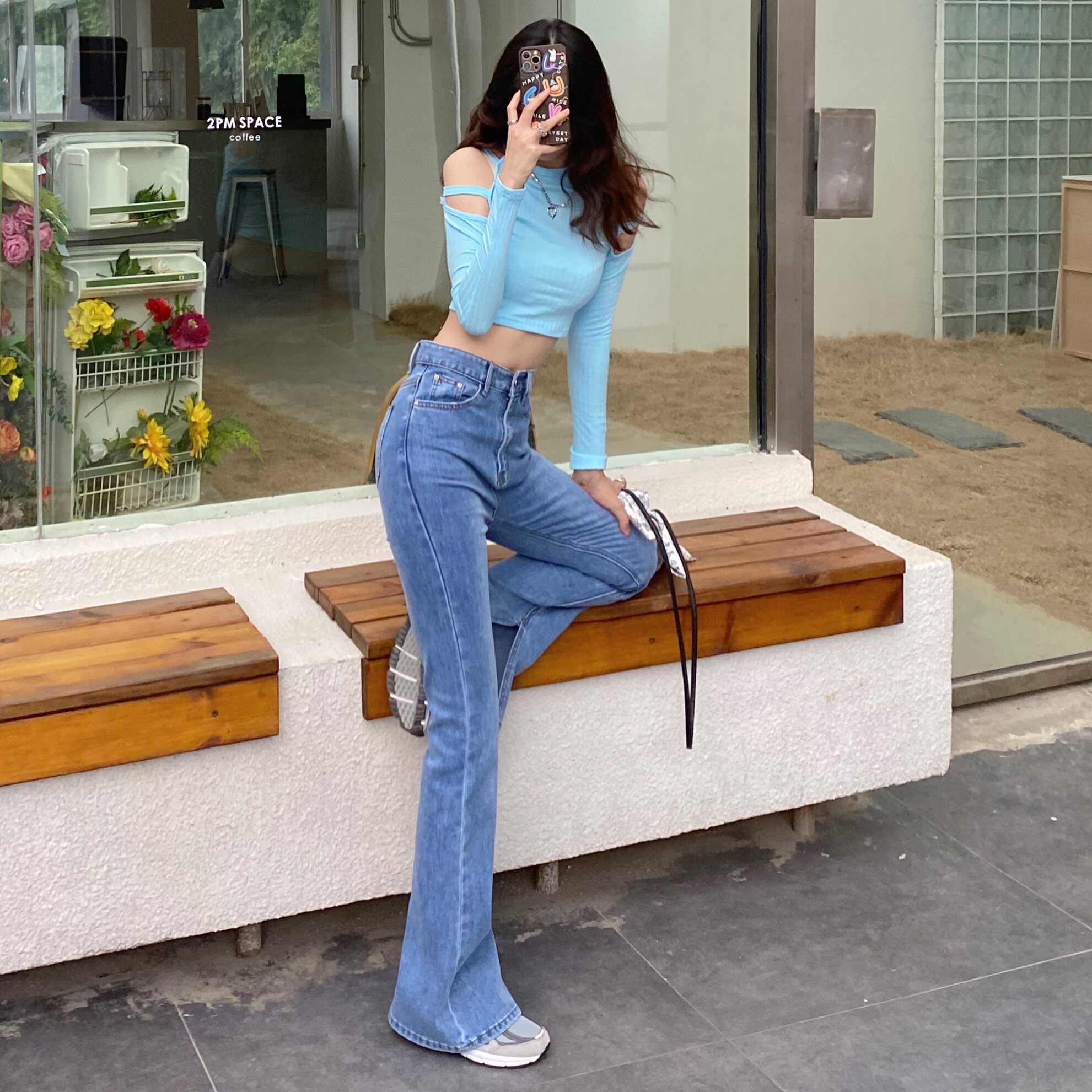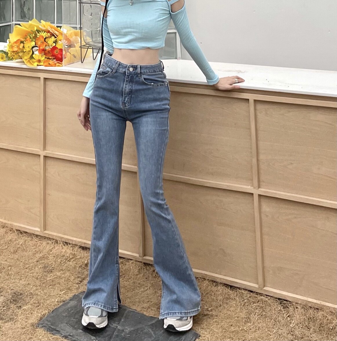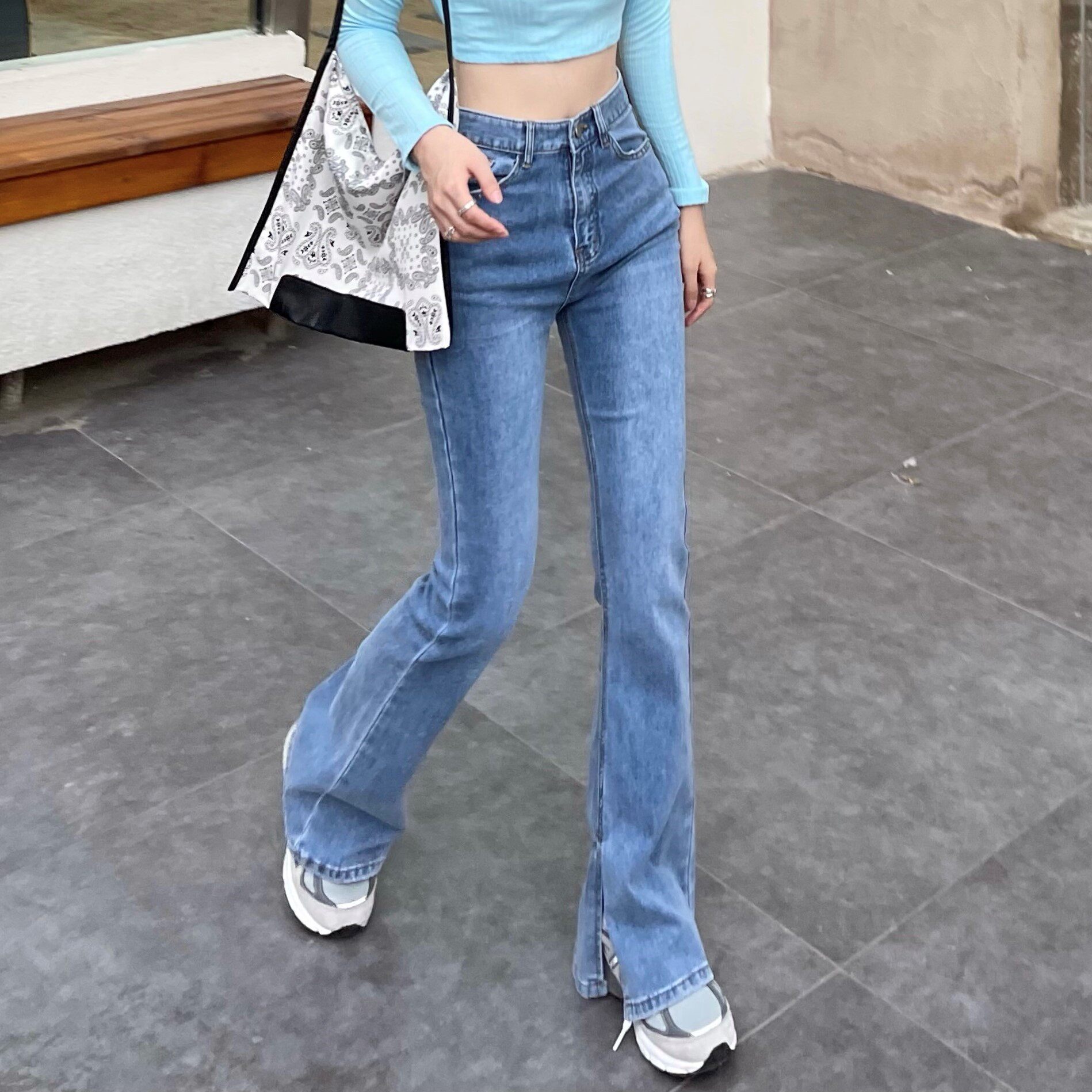 Tall split flared pants stretchy slim fit and slim 170 jeans women's 2021 autumn and winter new retro slimming