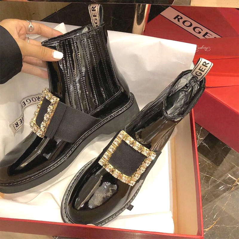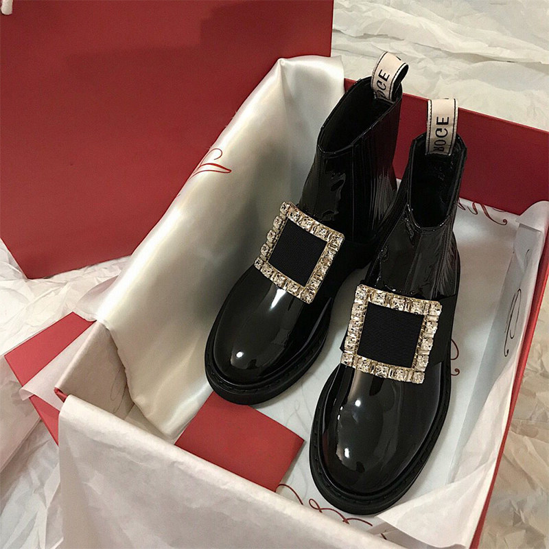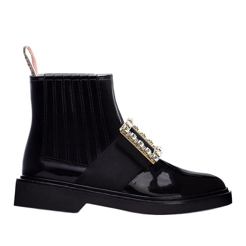 Ouyang Nana rhinestone square buckle ankle boots 2022 autumn and winter Chelsea boots British style black Martin boots women