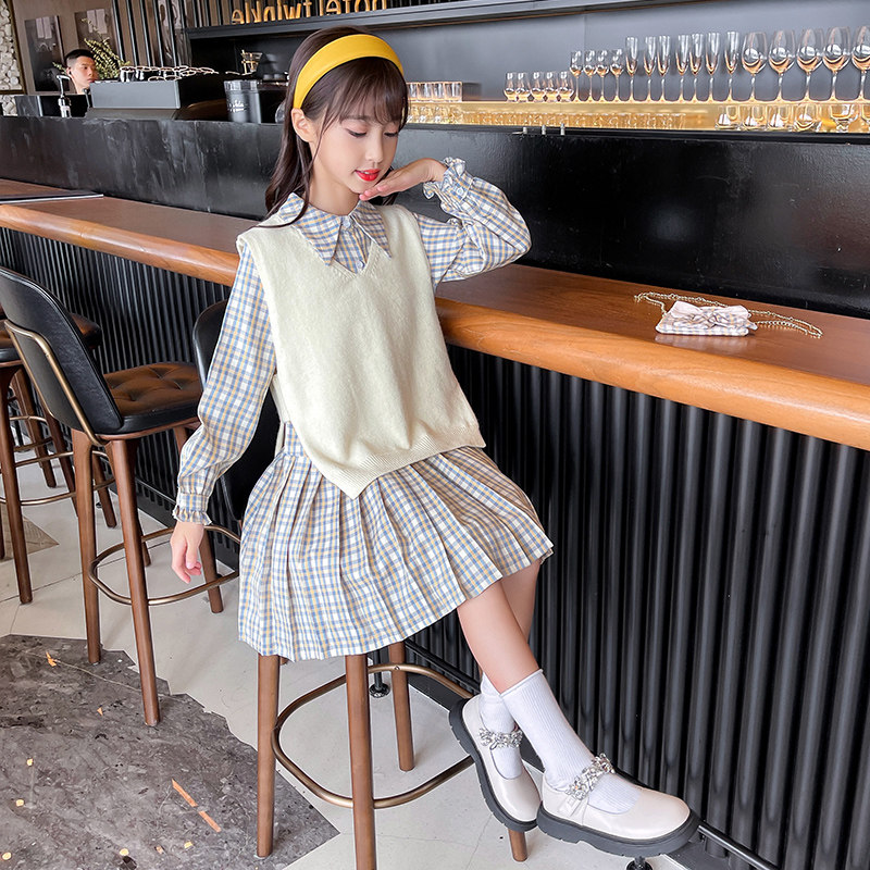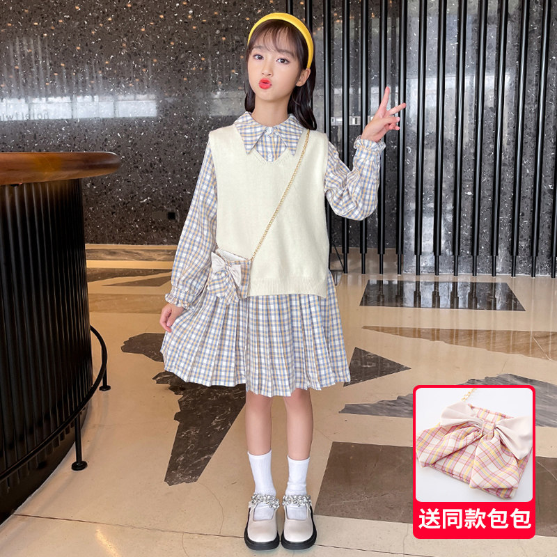 Girls Autumn Dresses 2022 New Western Style Net Red Girls Children's Clothing Autumn Princess Skirts Two-piece Suit