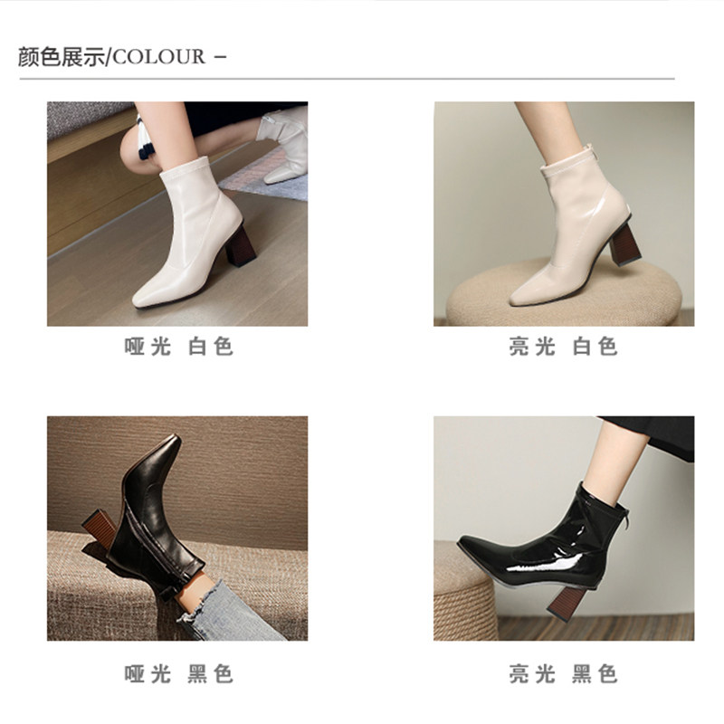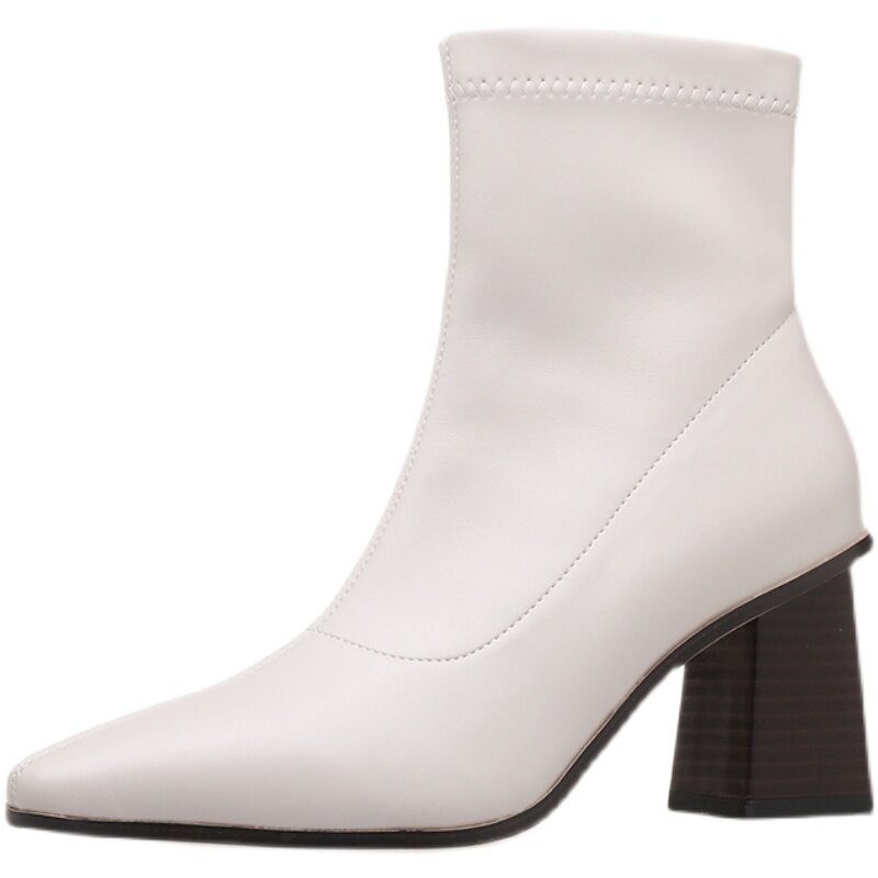 White Martin boots female spring autumn single boot Inron wind high heel boots 2022 new female crude heel short boots women's surge