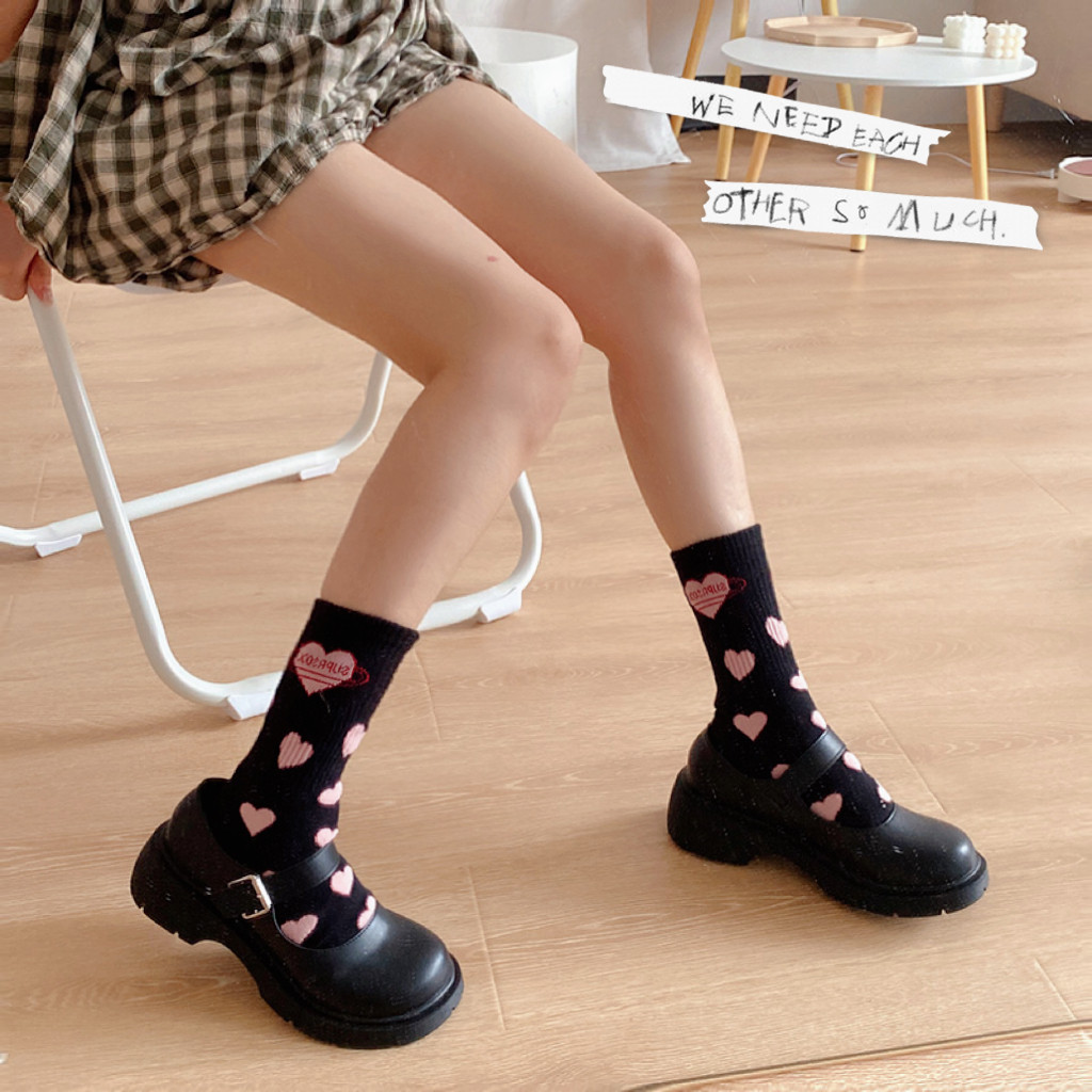 Spring and autumn trends Silo Socks Loving Sports Socks Children Jk White Letters Women Socks Black Retro 100 Hitch Cotton Socks