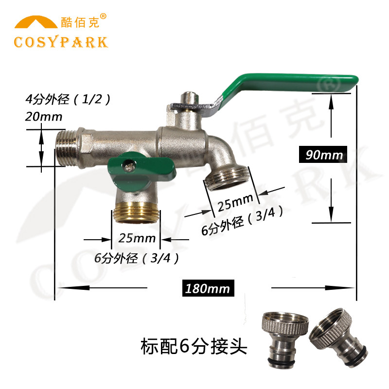 Garden brass double-out double-cut high-flow ball core faucet courtyard balcony gardening automatic flower watering nozzle