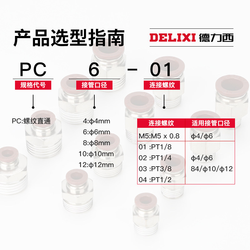 Delixi pneumatic PU tube quick plug PC8-02 straight-through quick connector PC4-M5 6-01 10-03 12-04