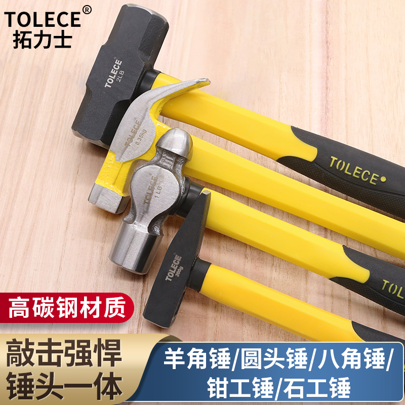 Tinto trio octagonal hammer sheep horn masonry iron hammer fitter hammer round head mini hammer sheet metal wood hardware tools