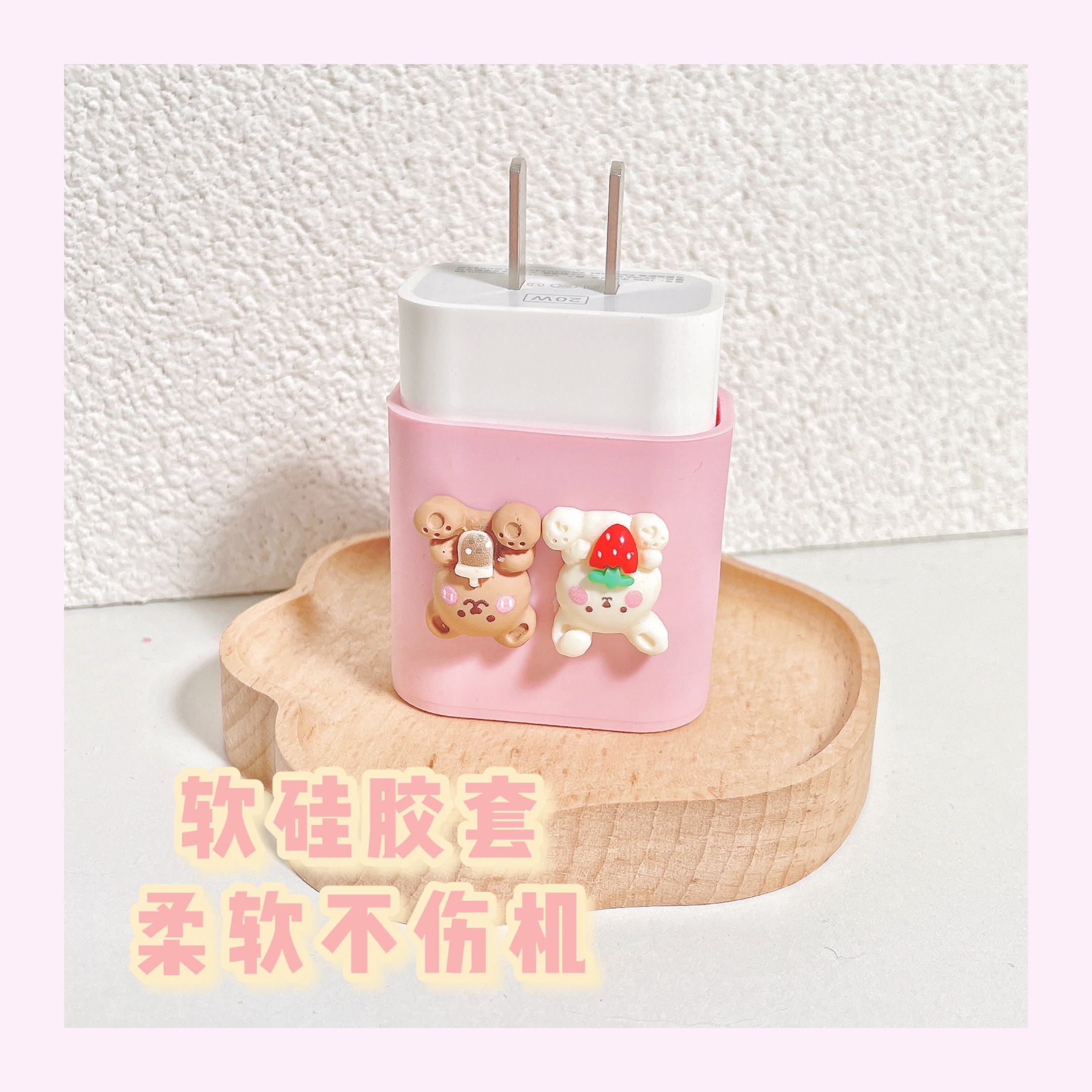 Food bear pink charger silicone cover food bear pink silicone cover data line protection food bear pink silicone cover data line protection food bear white charger silicone cover food bear white silicone cover