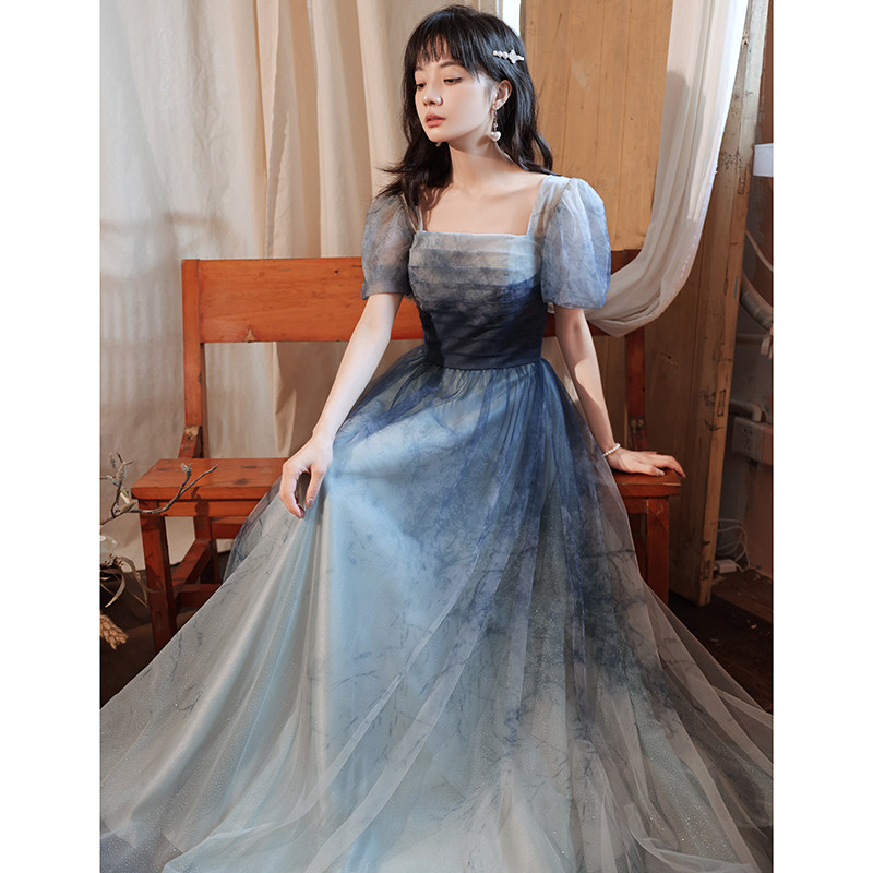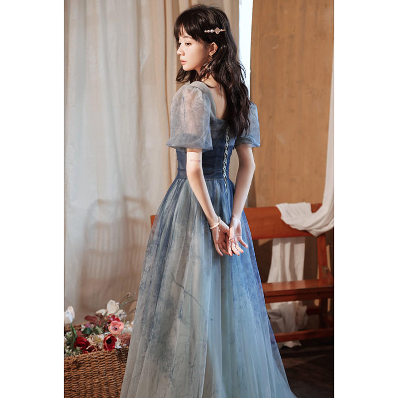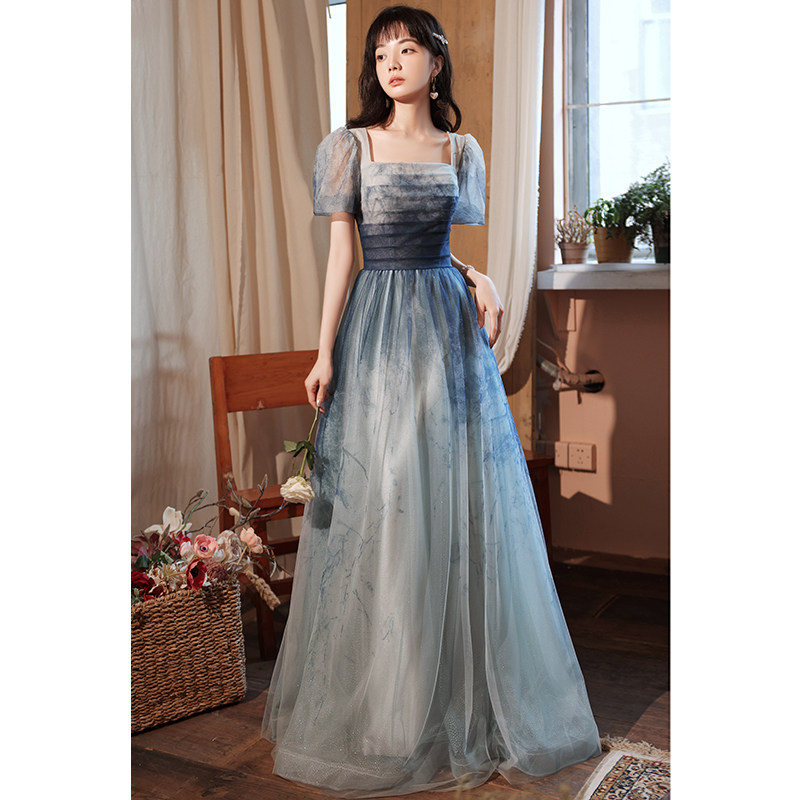High-end evening dress 2022 new blue temperament light luxury niche celebrity senior banquet coming-of-age dress female