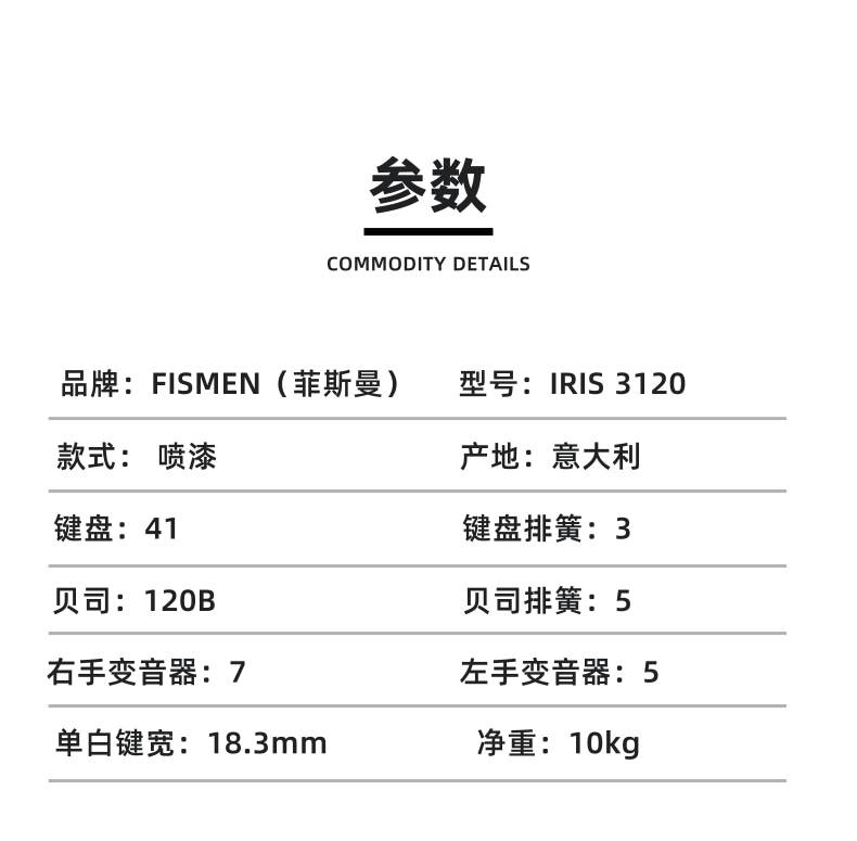 Italian FISMEN Fischman 120B Three-row spring keyboard grey 36 years Venetian accordion Professional shop