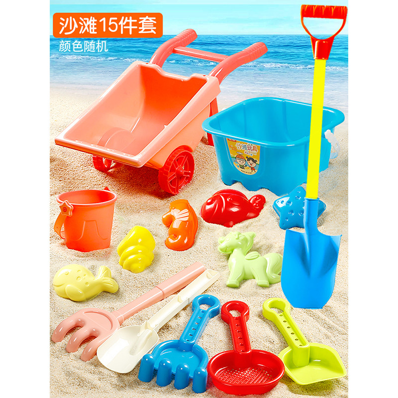 Children's beach toy car cover play sand dredging shovel and bucket water tool large small boy girl hourglass