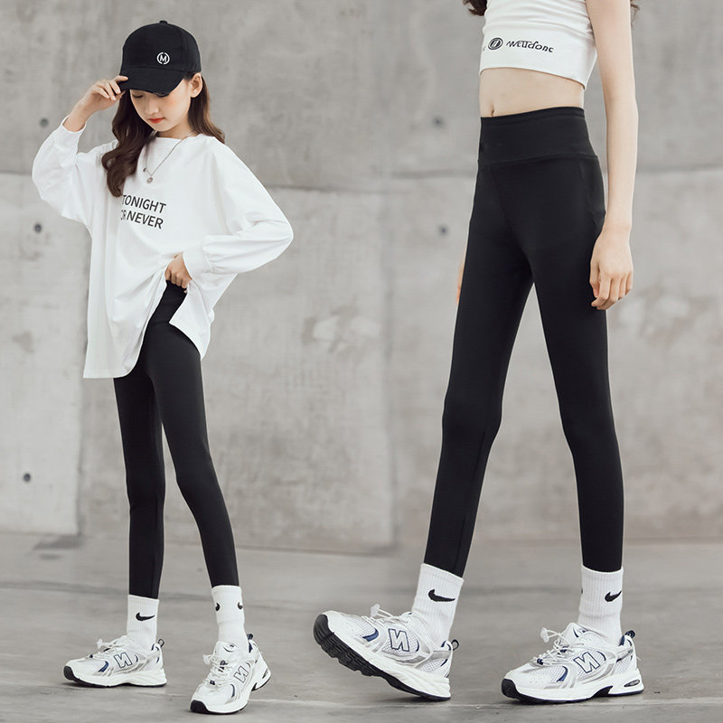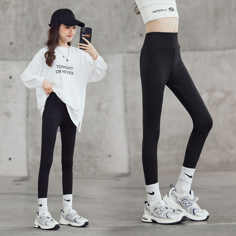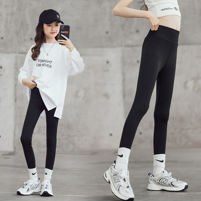 Girl Shark Fur Leather Pants Children Spring Autumn style Fried Street Inner pants spring clothing Net red yoga pants outside wearing big child long pants