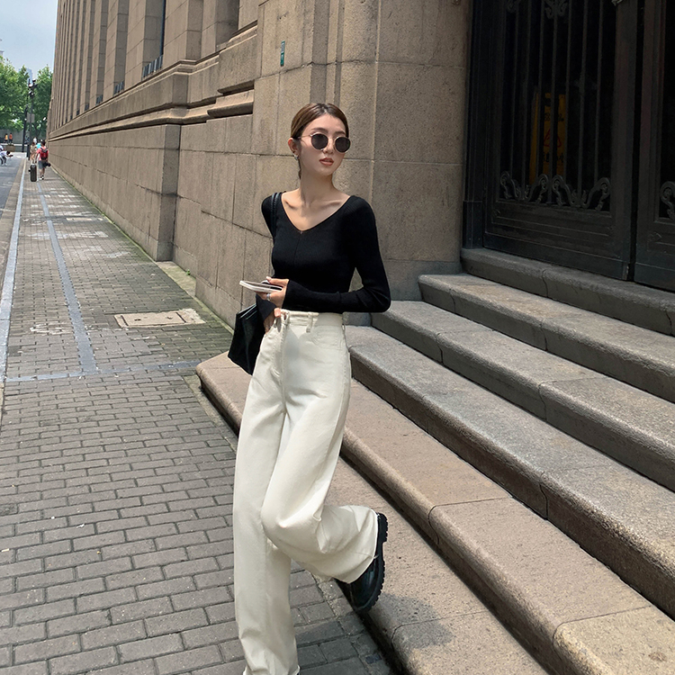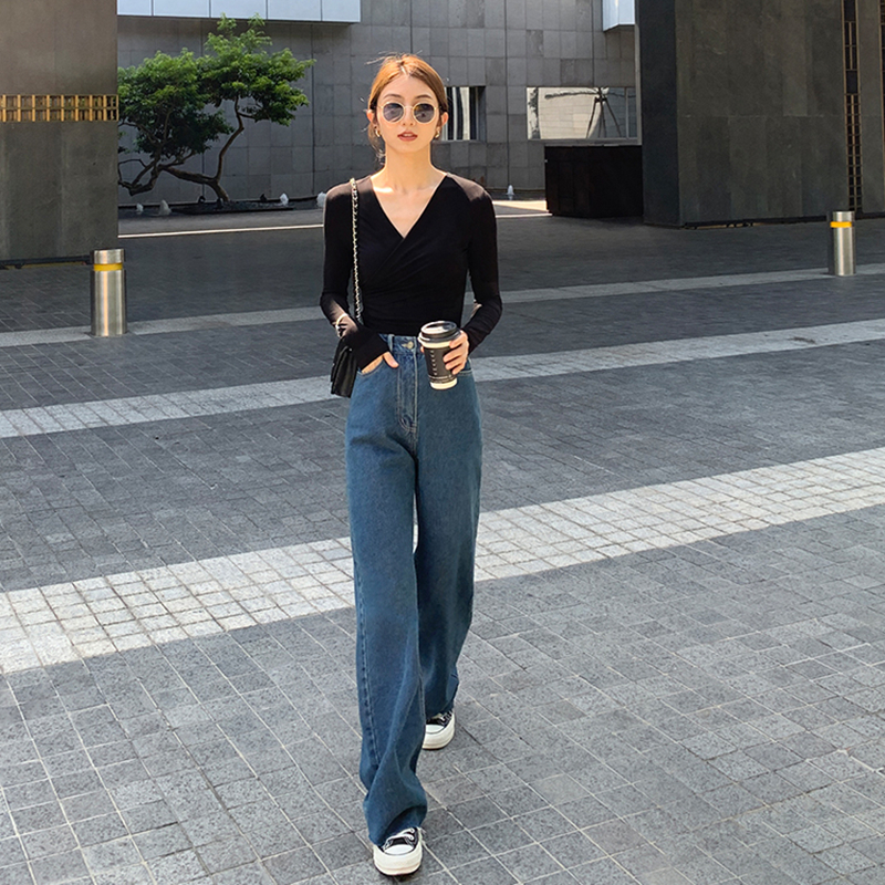 South Korea Straight Barrel Jeans Woman Thin 2022 new spring autumn high waist loose with lean pituality towering broadlegged trousers
