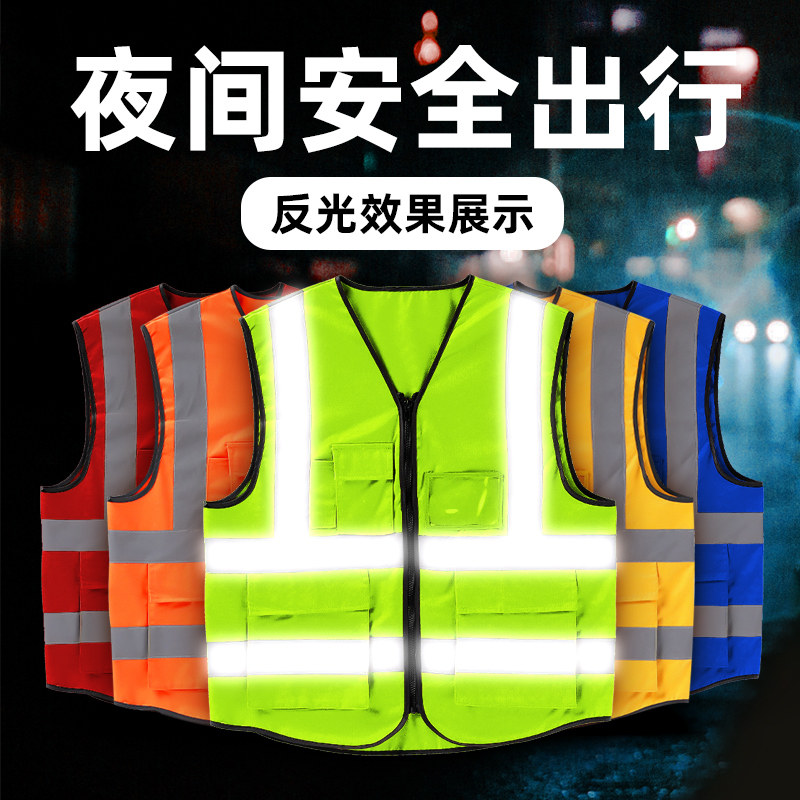 Reflective safety vest waistcoat anti-static male construction traffic riding workwear night reflective clothing full cotton custom-made