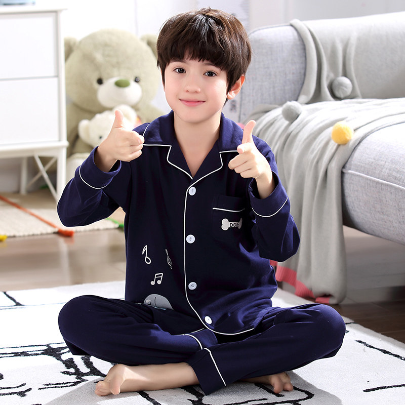 Pure Cotton Children Sleepwear Spring Autumn Season Boy Baby Long Sleeve Thin section Young CUHK Total Cotton Home Suit-Taobao