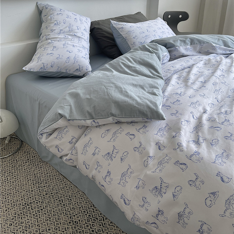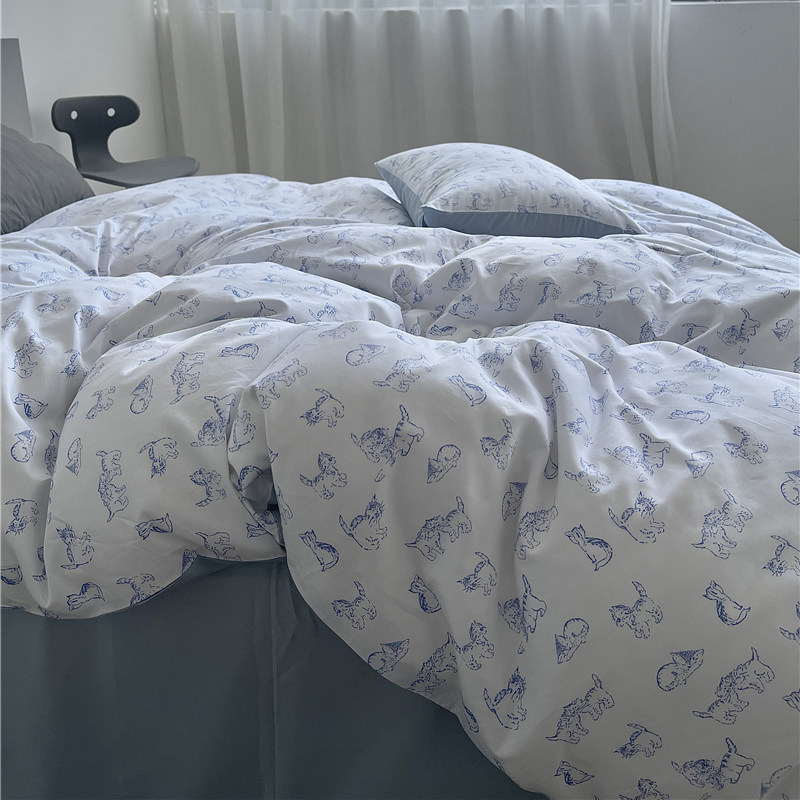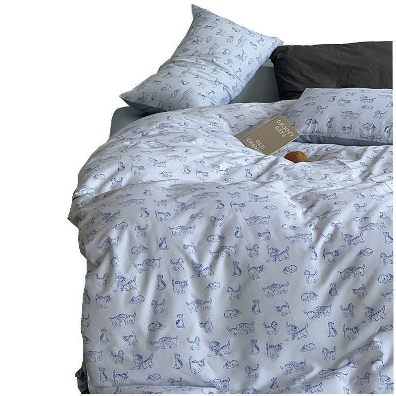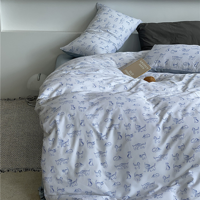 ins Han style small kitty quilt cover four pieces of pure cotton 60 long suede cotton gon satin hand-painted small animal bed supplies