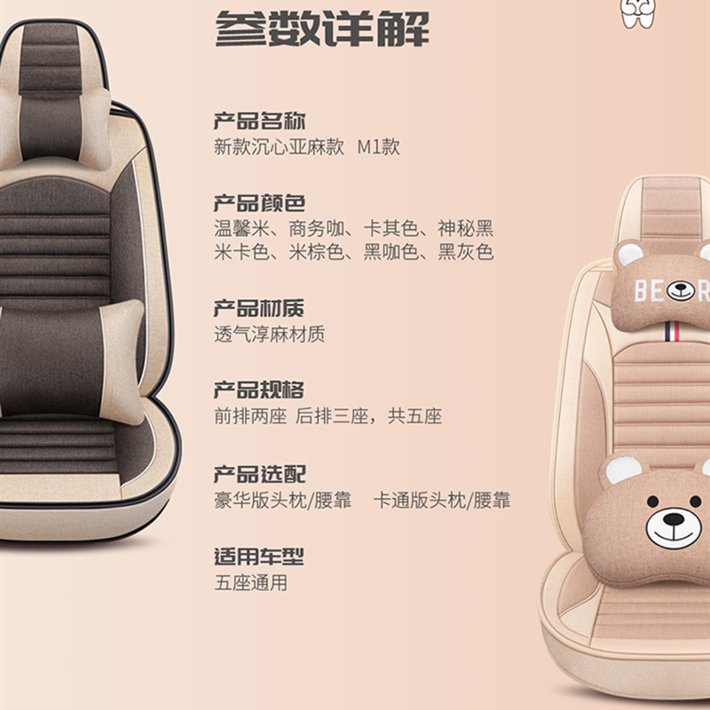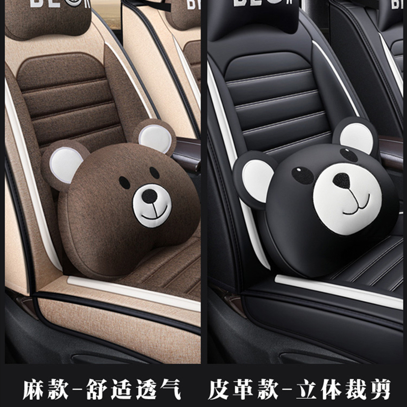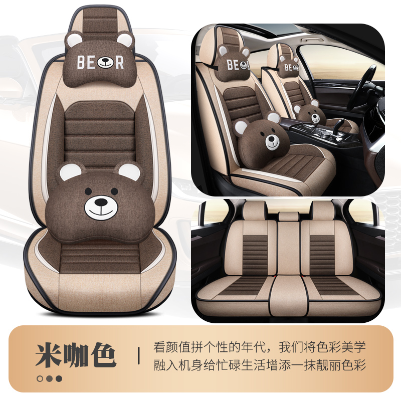 21 new car seat cushion four seasons general linen fully surrounded breathable seat cover seat cover cartoon bear car house 4S