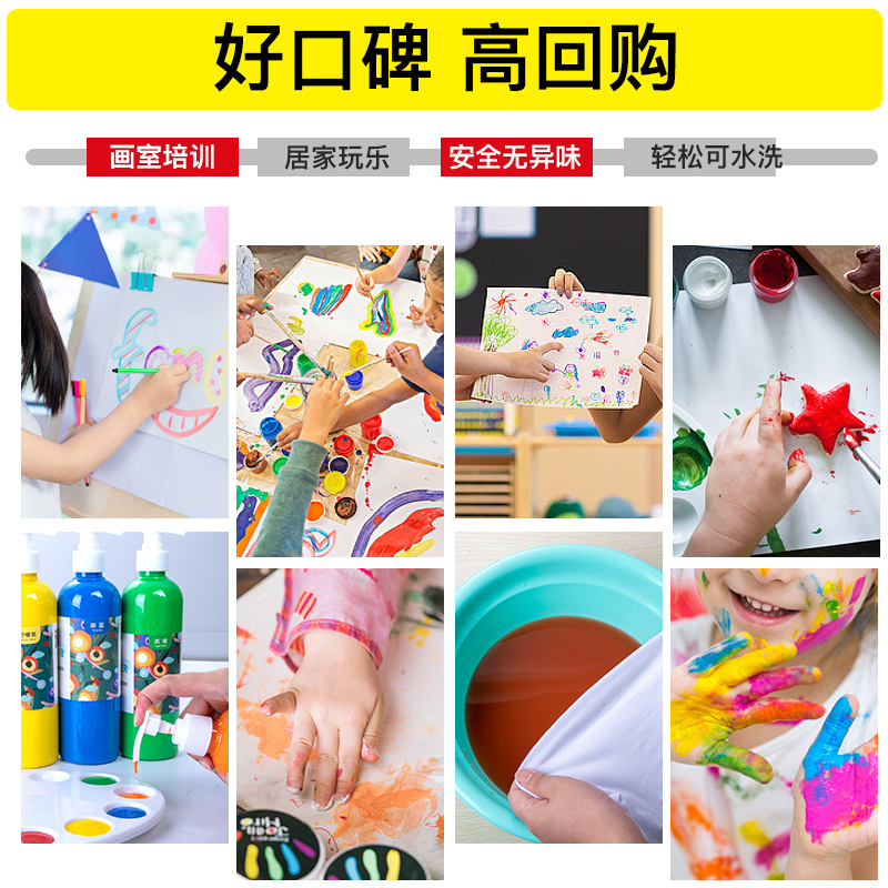 Paint Children Water Powder Watercolor Painting Washable Nursery School Baby Drawing Color Suit Hand Finger Painting Painting Complete Special Tool Small Bear Elementary Students White Paintbrush Fine Art Course Material Bag-Taobao