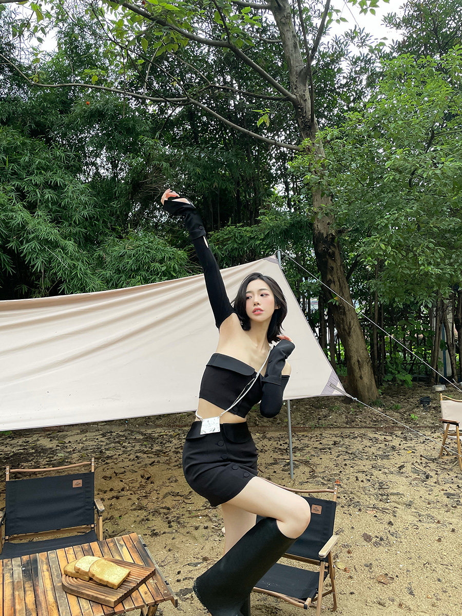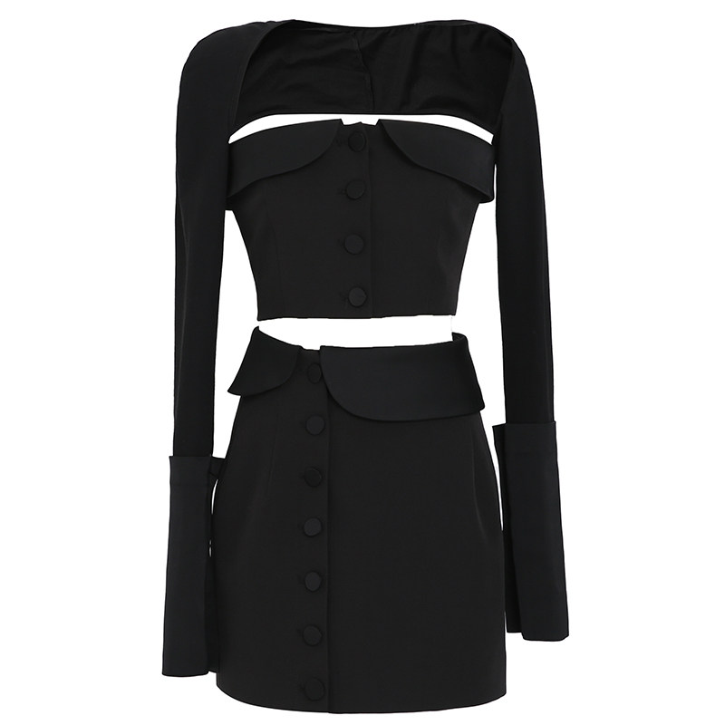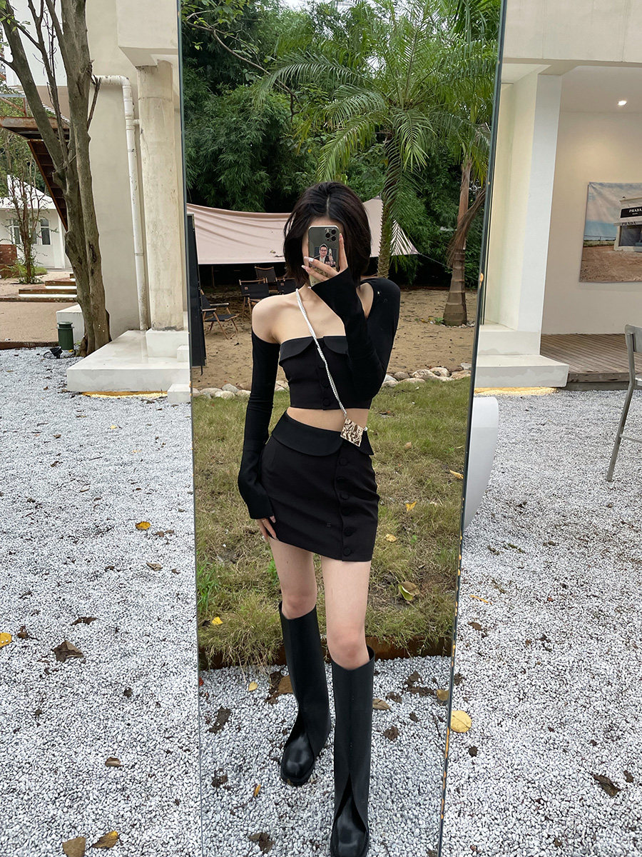 (LaluneDuCiel) LLDC short Dew Waist Smear High Waist Short Skirt Shawl Sleeve Hot Girl Suit Woman