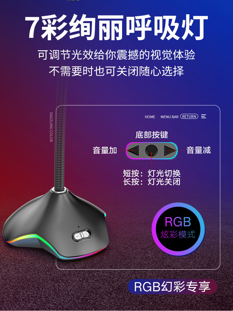 Comber Gaming Microphone Computer Desktop Microphone Noise Reduction Capacitive Microphone Eat Chicken Popu-Pine Fashion