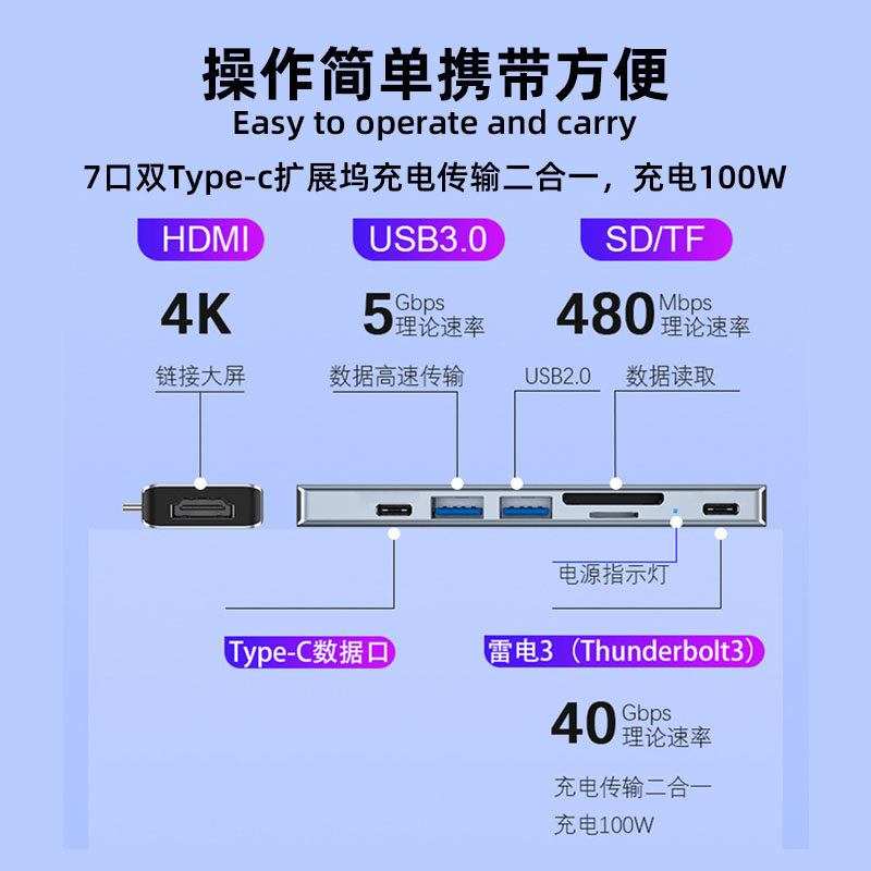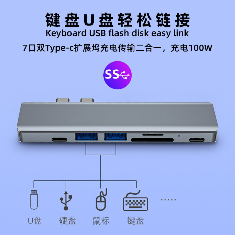 Applicable macbook extension dock Type-c Apple laptop hub converter USB multi-connector lightning 3