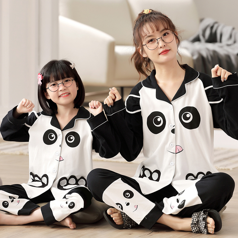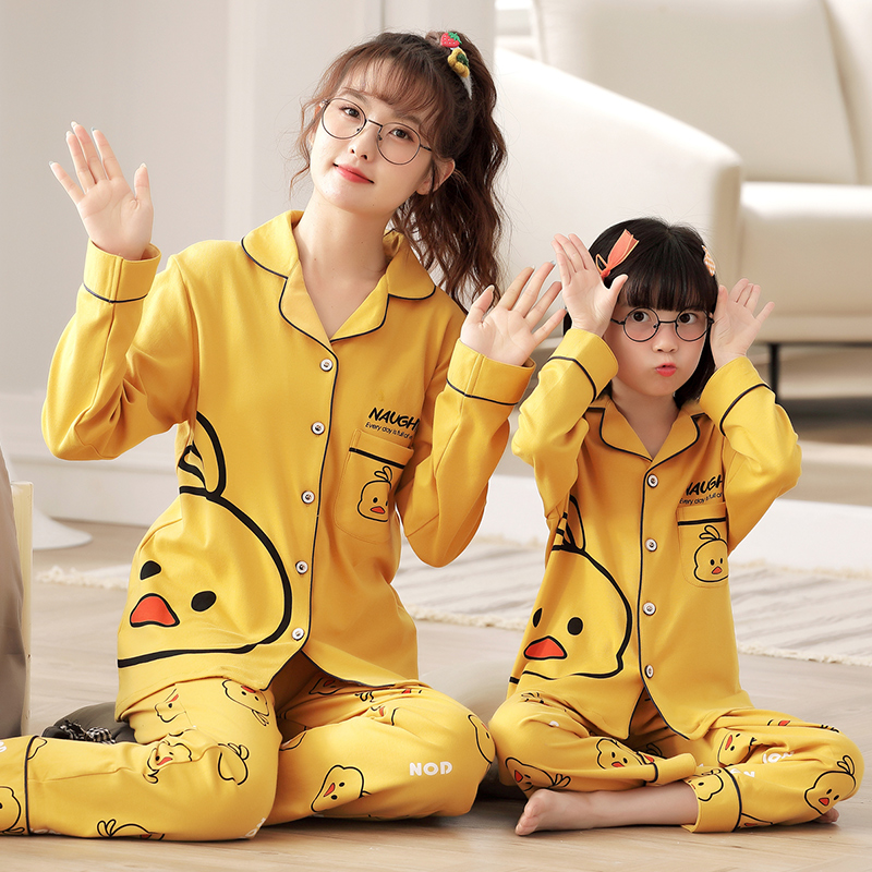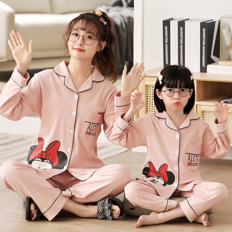 Pure Cotton Children Pyjamas Girl Girl Girl Baby Long Sleeve Mother Girl Parenting Cartoon Autumn/Winter Home Suit Ottmann
