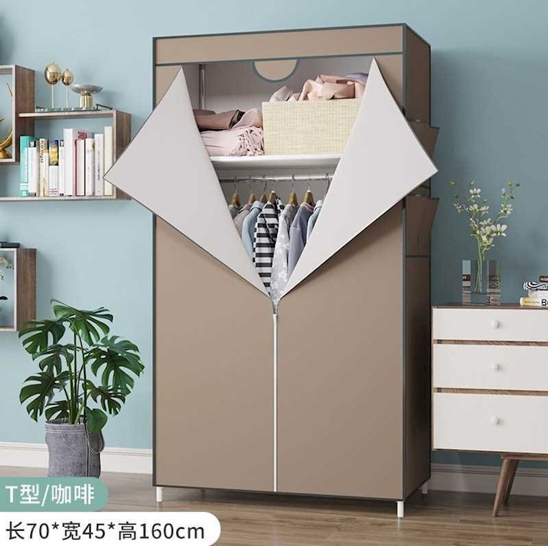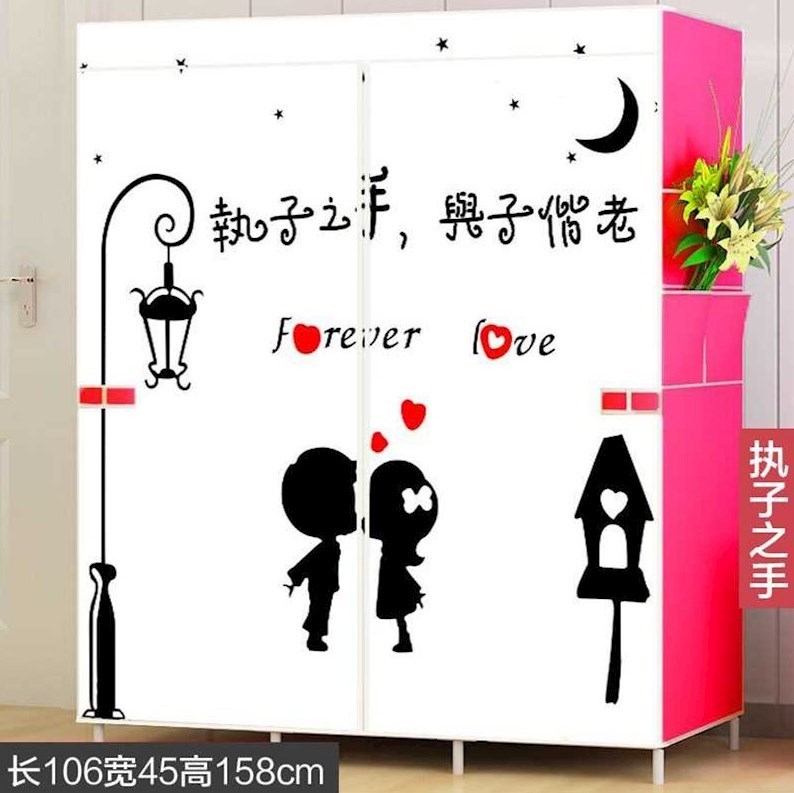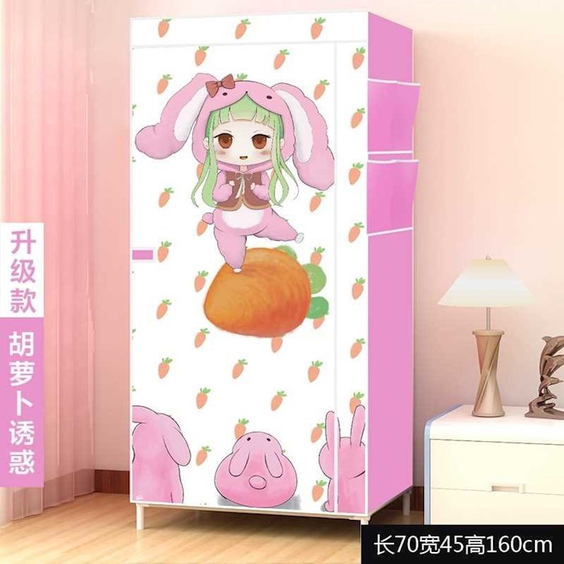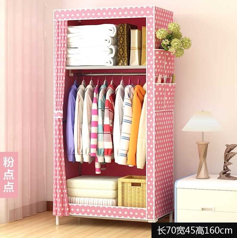 Reinforced small single simple textile wardrobe bold and thick canvas art assembly folding bedroom cloth cabinet students
