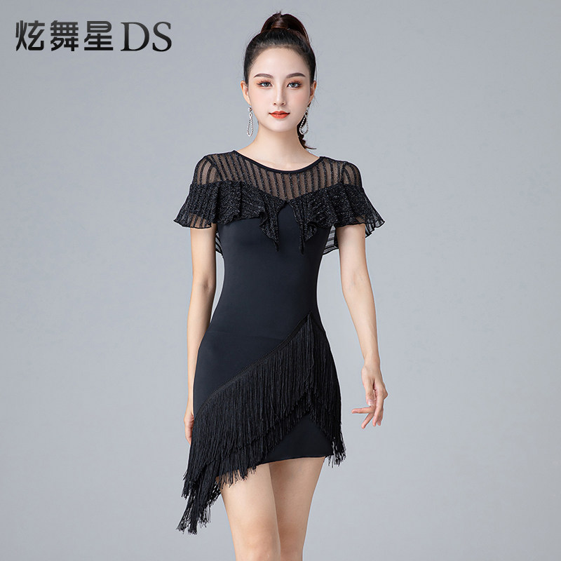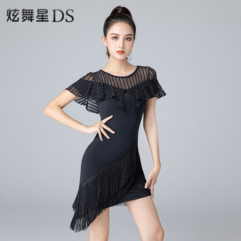 Latin Dance Ocean Dress Sexy Streaming Sudrills Suit Professional Net Yarn Lotus Leaf Side Dance Suit Upscale Training Suit