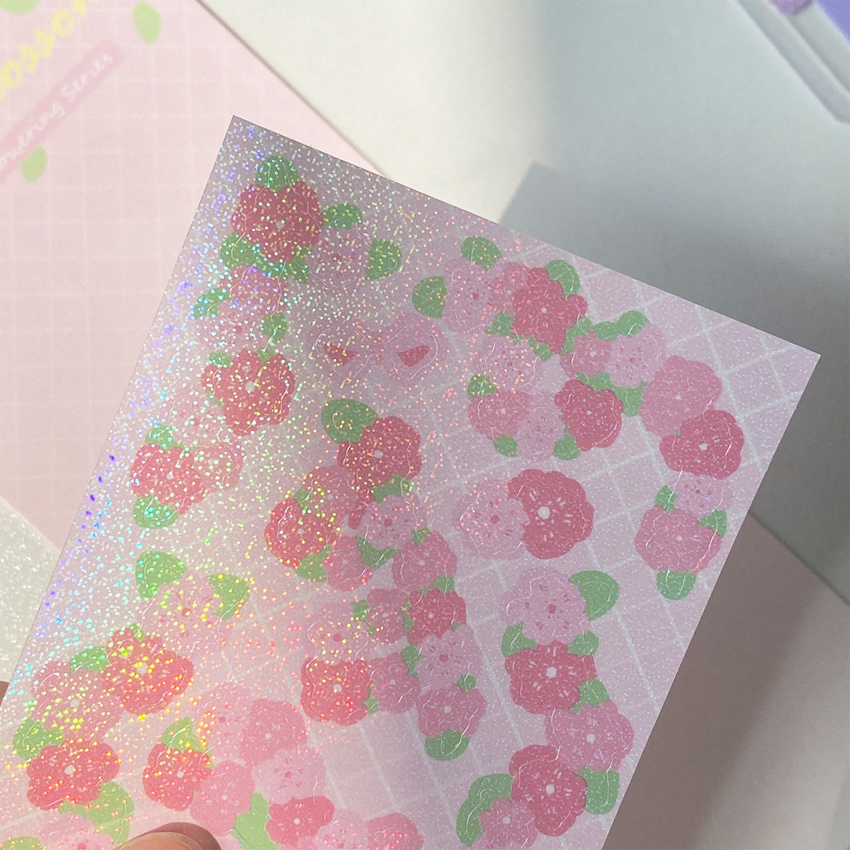 Korean in romantic flower sticker Laser ribbon with Rose Gokka picture handbook diy material