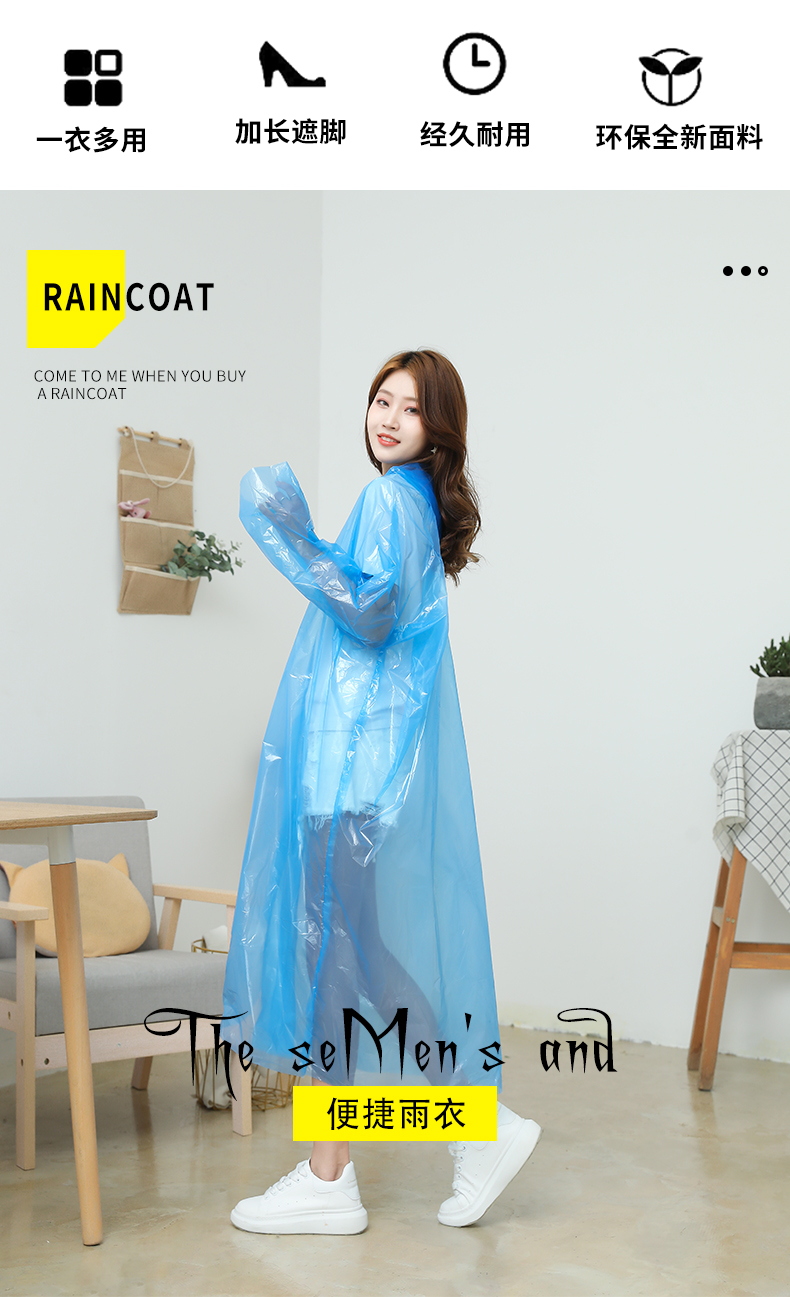 Protective transparent disposable raincoat Long version of full body Men's and women's portable thickened Anti-rainstorm Summer even body light for adults