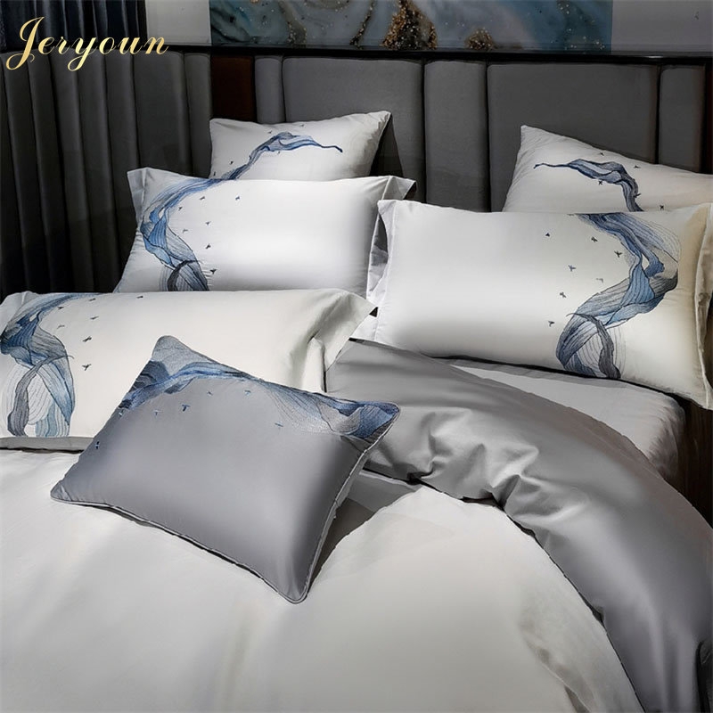 JERYOUN can be light luxury Xinjiang long-staple cotton cotton satin embroidery high-end four-piece villa luxury