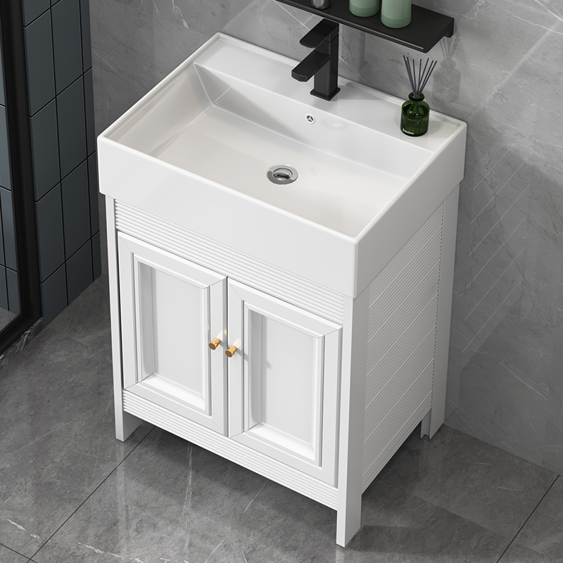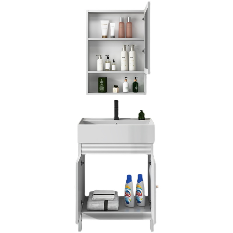 Contains a bathroom cabinet with bathroom side cabinet containing tap